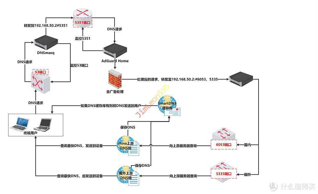 DNSMASQ --> AdGuard Home --> SmartDNS