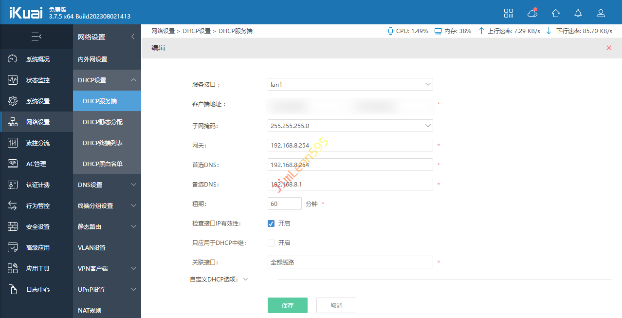 DHCP服务,统一由iKuai分配。