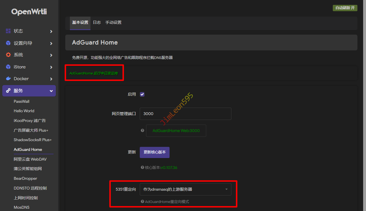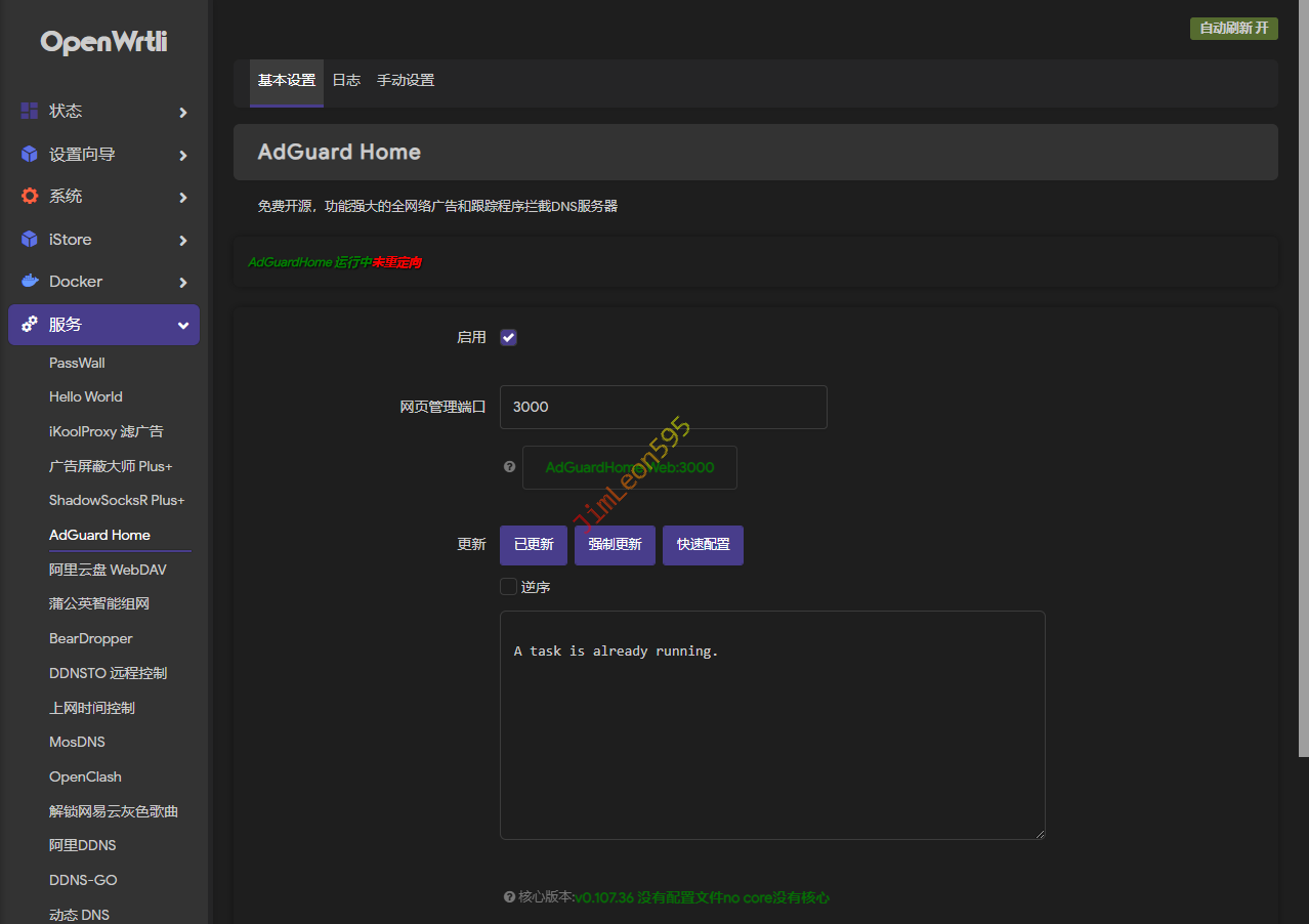 就会看到AdGuard Home 运行中已重定向