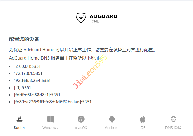 确认 AdGuard Home 配置