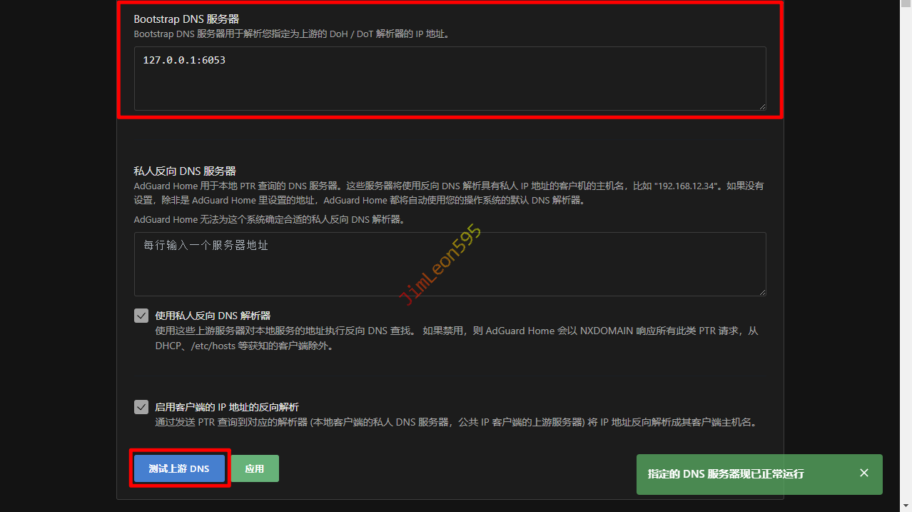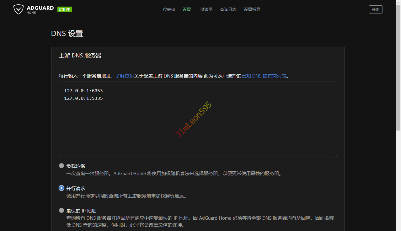 这时候我们就要将AdGuard Home的上游DNS服务器设置为SmartDNS