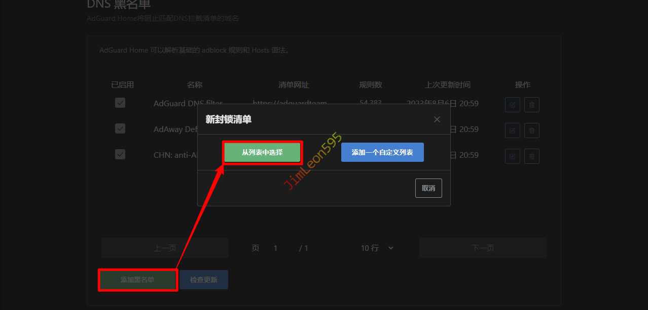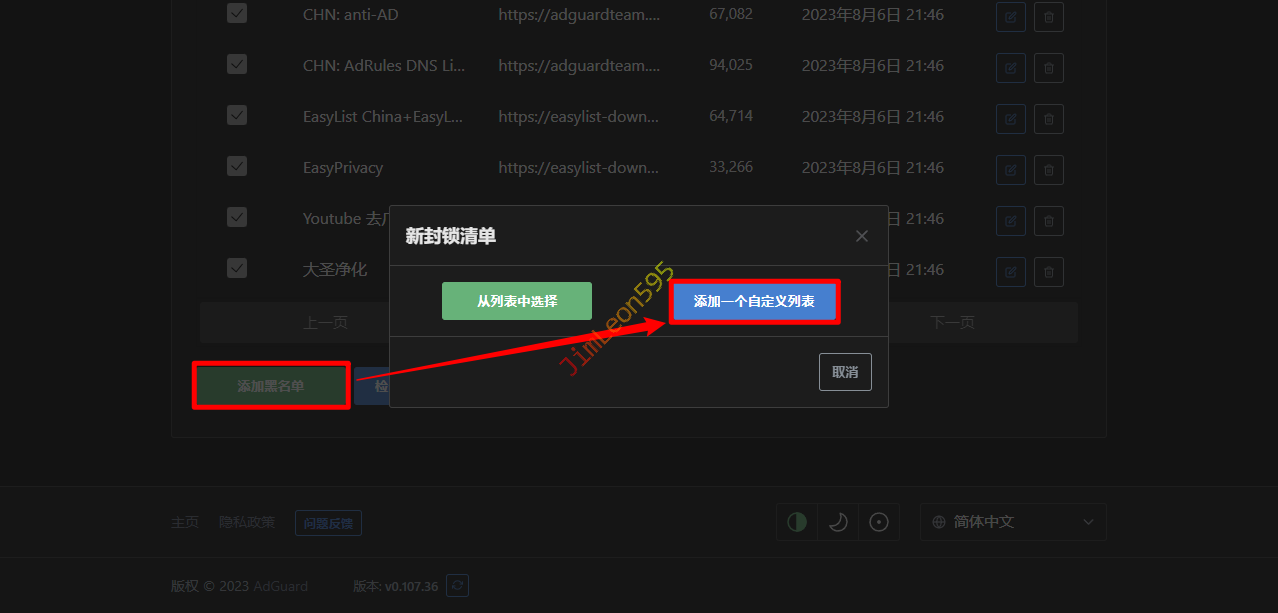 添加黑名单 --> 添加一个自定义列表