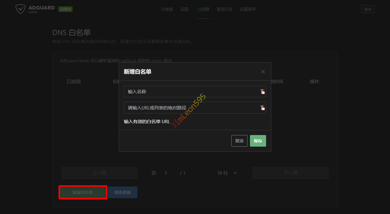 过滤器 --> DNS 白名单 --> 添加白名单