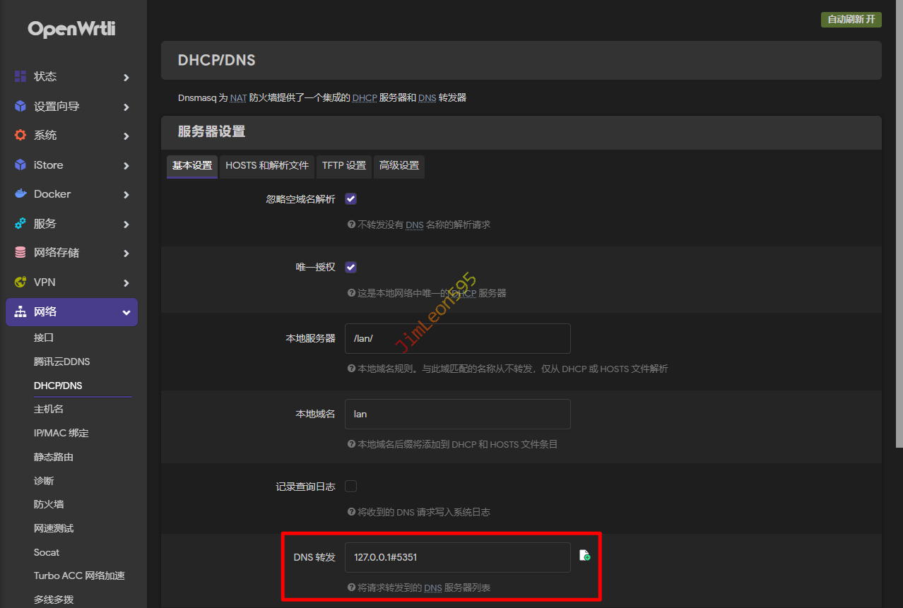 这步操作主要是解除 DNSMASQ 的 DNS 功能