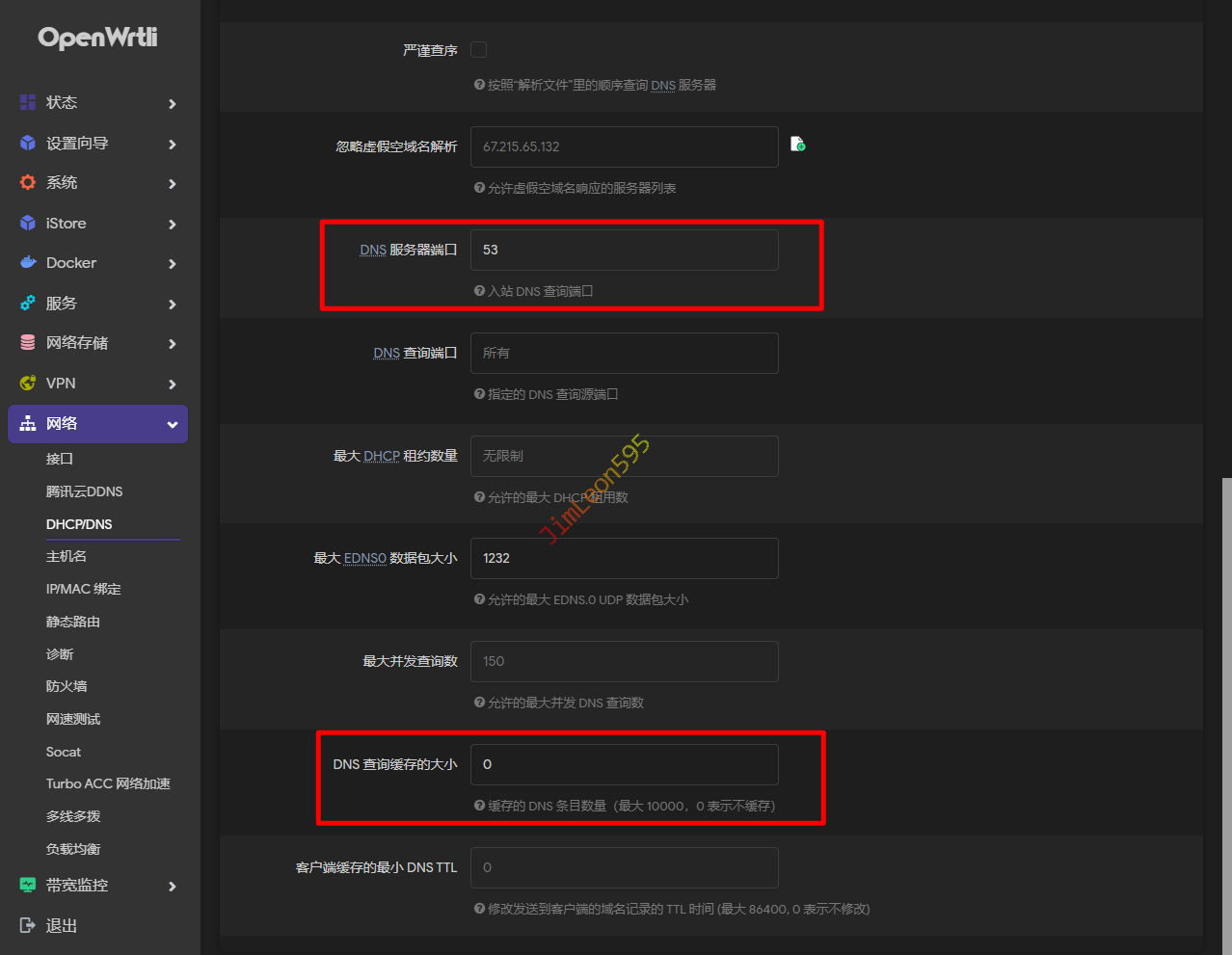 DNS服务器端口:53DNS查询缓存的大小:0