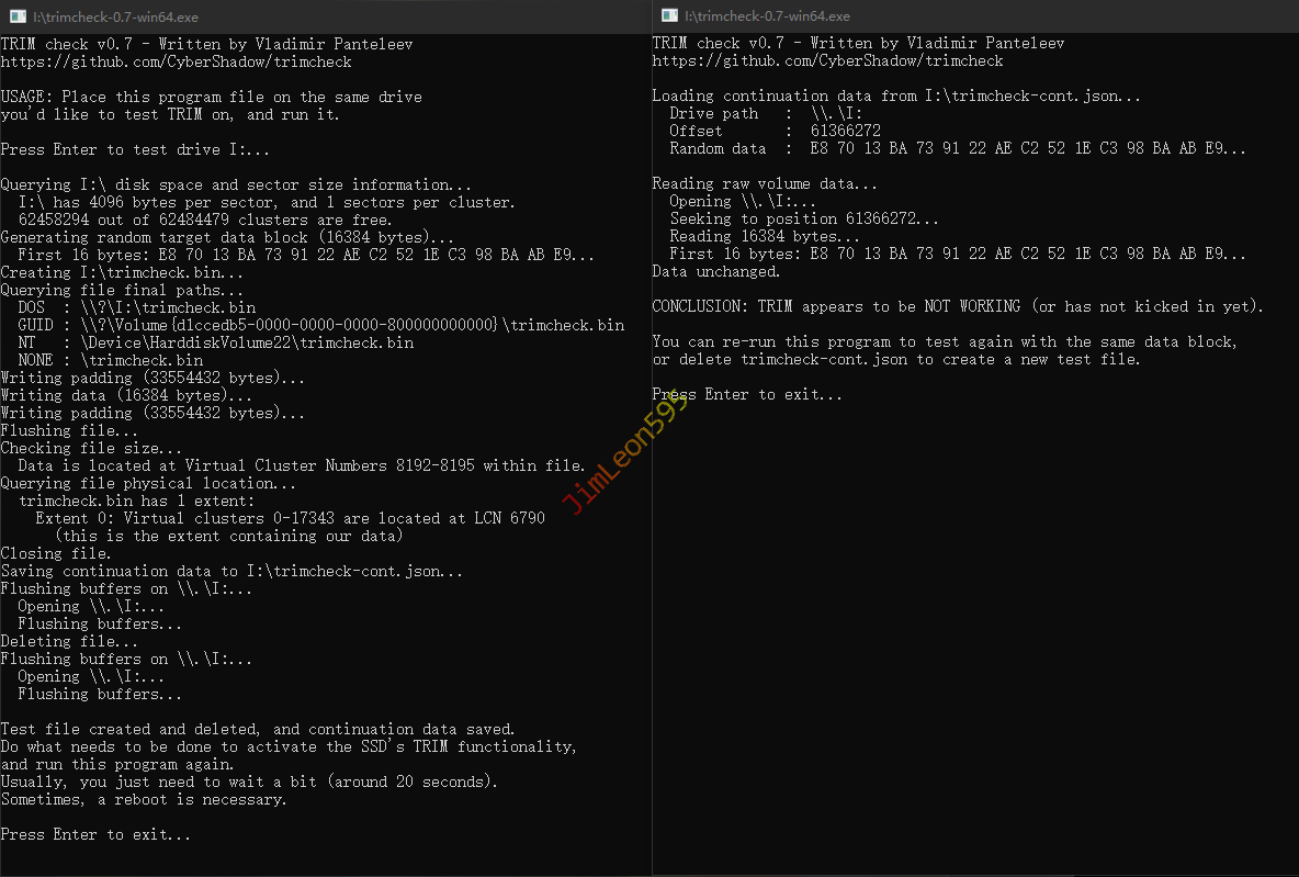 设备外观 USB-A口 USB-C口 ChipGenius 芯片精灵 CrystalDiskInfo 因为不是SSD【固态硬盘】和HDD【机械硬盘】 所以测试设备作为U盘,该项略过 TxBENCH CrystalDiskMark IsMyHdOK ATTO Disk Benchmark TrimCheak 查看 Windows 是否开启 TRIM 功能 1fsutil behavior query disabledeletenotify 如果本机开启了TRIM功能 会显示 =0 (已禁用) exFAT NTFS WTGBench AS SSD Benchmark 写保护功能 小拨片在🔒处即为开启写功能保护