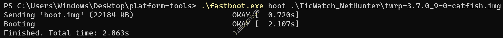 fastboot boot twrp-3.7.0-9-0-catfish.img