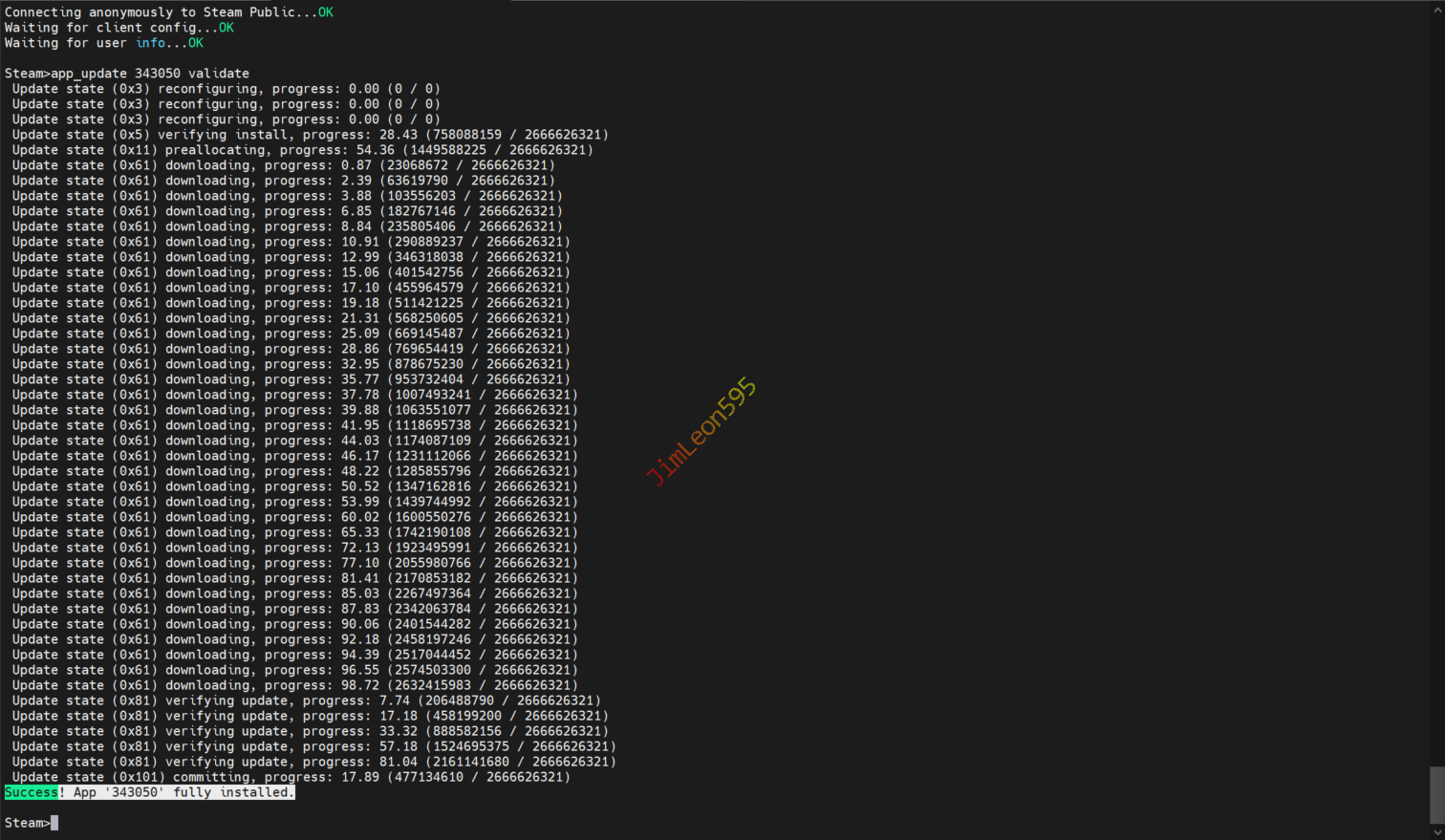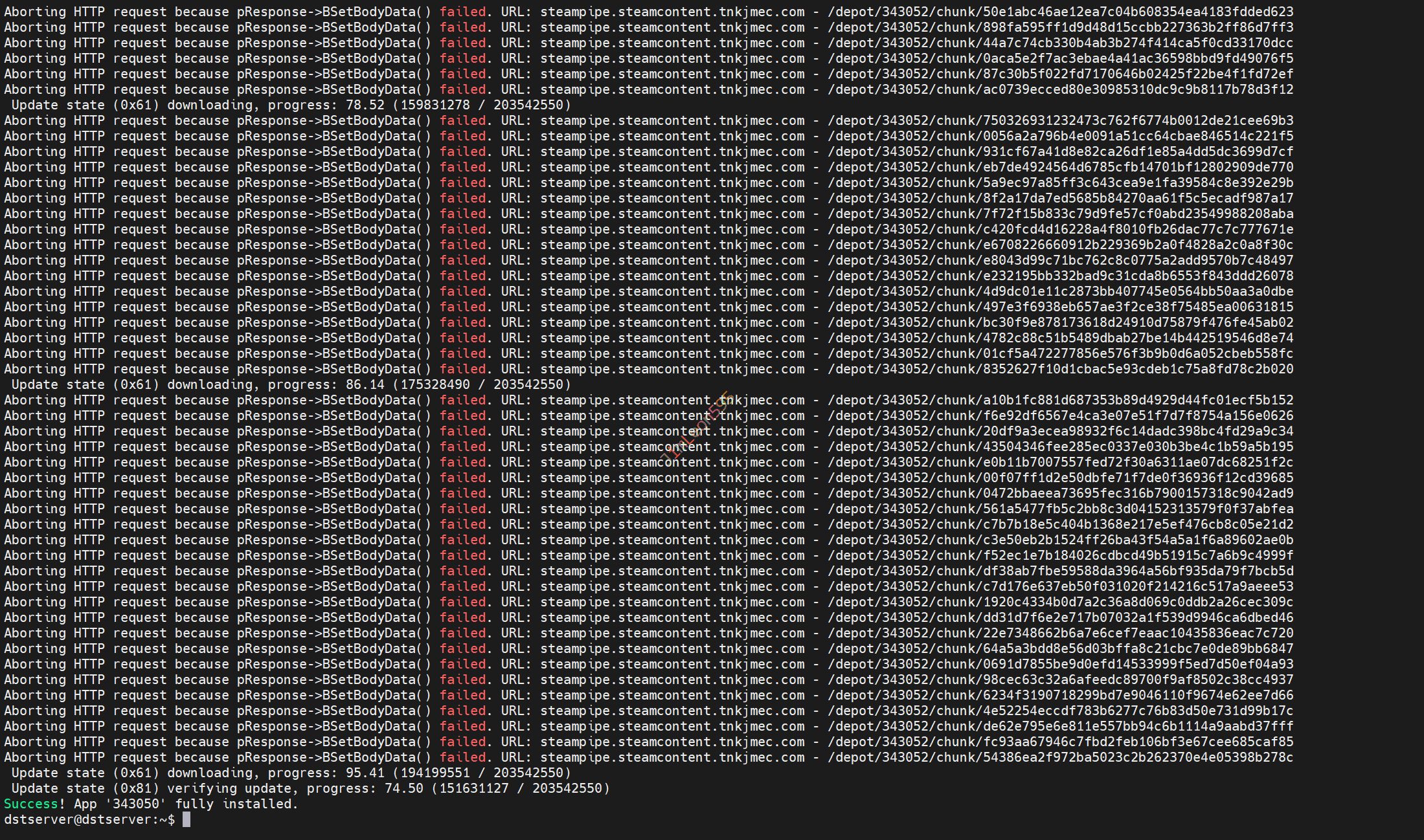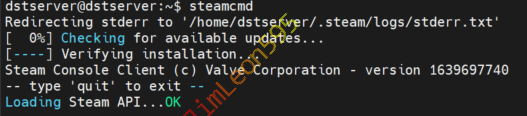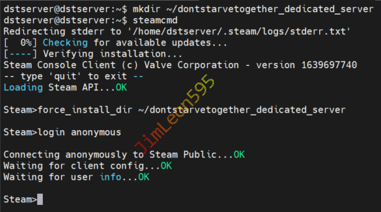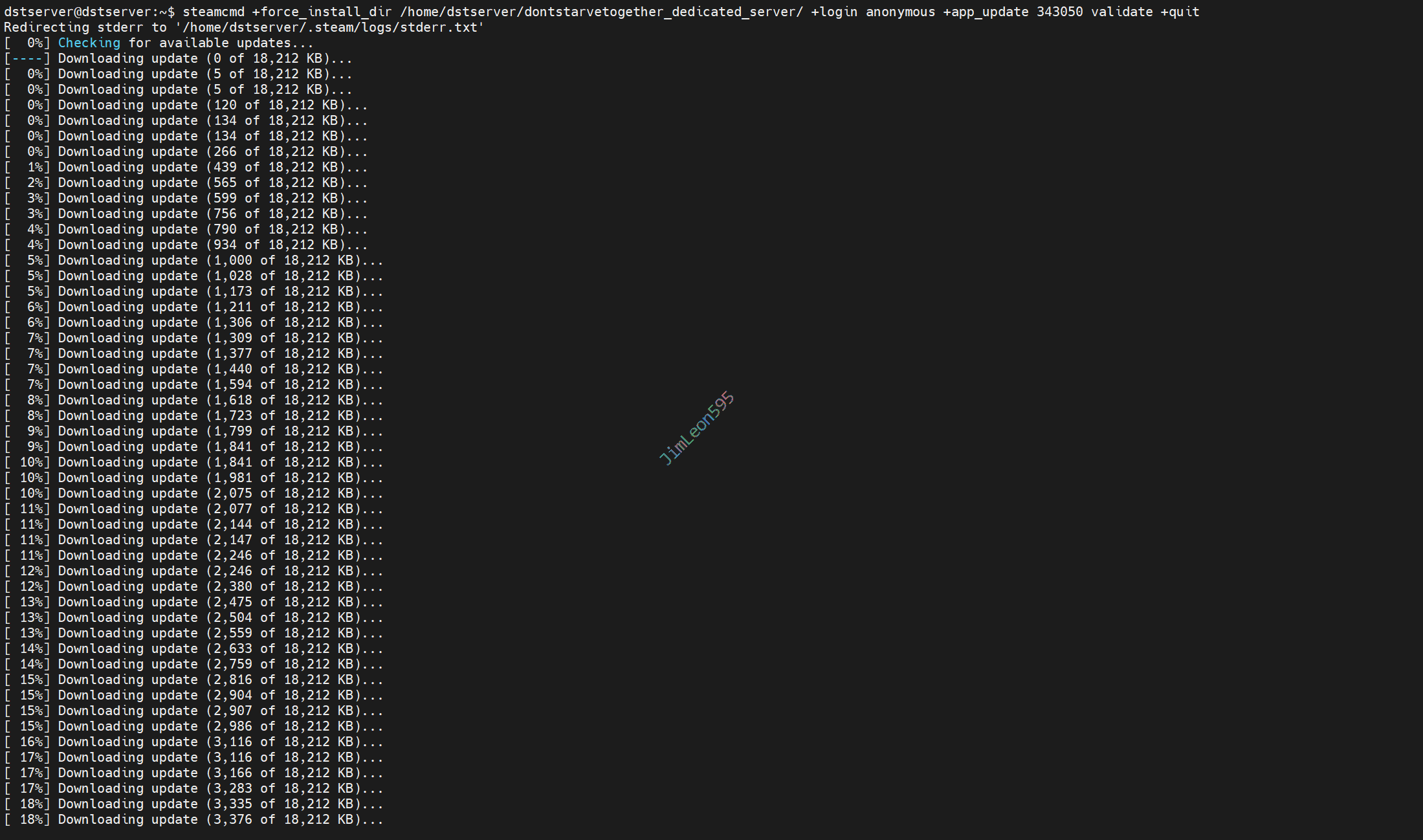 1 | steamcmd +force_install_dir /home/ubuntu/dstserver/ +login anonymous +app_update 343050 validate +quit |