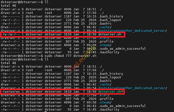 1 | sudo chmod 777 /home/ubuntu/dstserver/DstServer.sh |