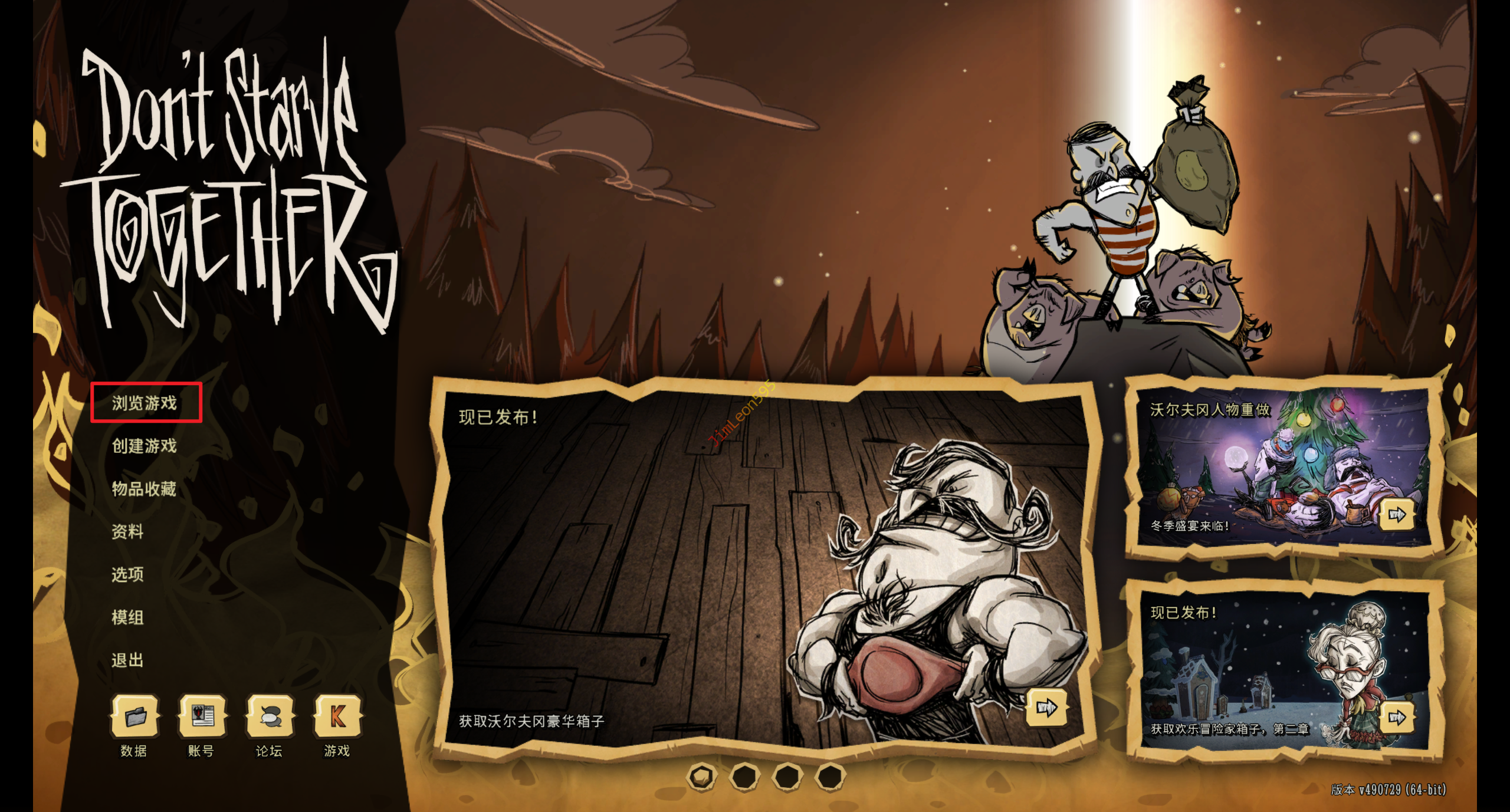 匿名登录了之后,我们就开始下载 饥荒 吧