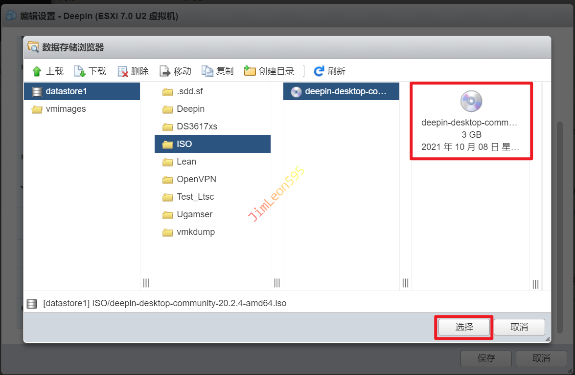 下载完成之后,我们把*.iso文件上传到ESXI上