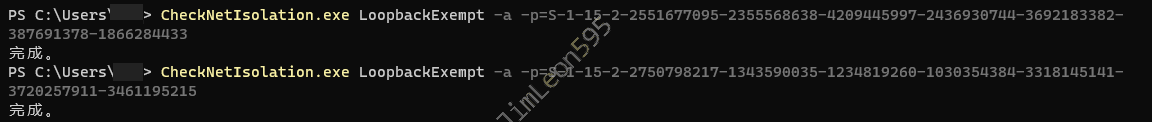 | 1 | CheckNetIsolation.exe LoopbackExempt -a -p=S-1-15-2-2551677095-2355568638-4209445997-2436930744-3692183382-387691378-1866284433 |