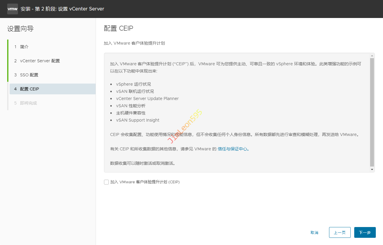 肯定不 加入 VMware 客户体验提升计划 (CEIP)