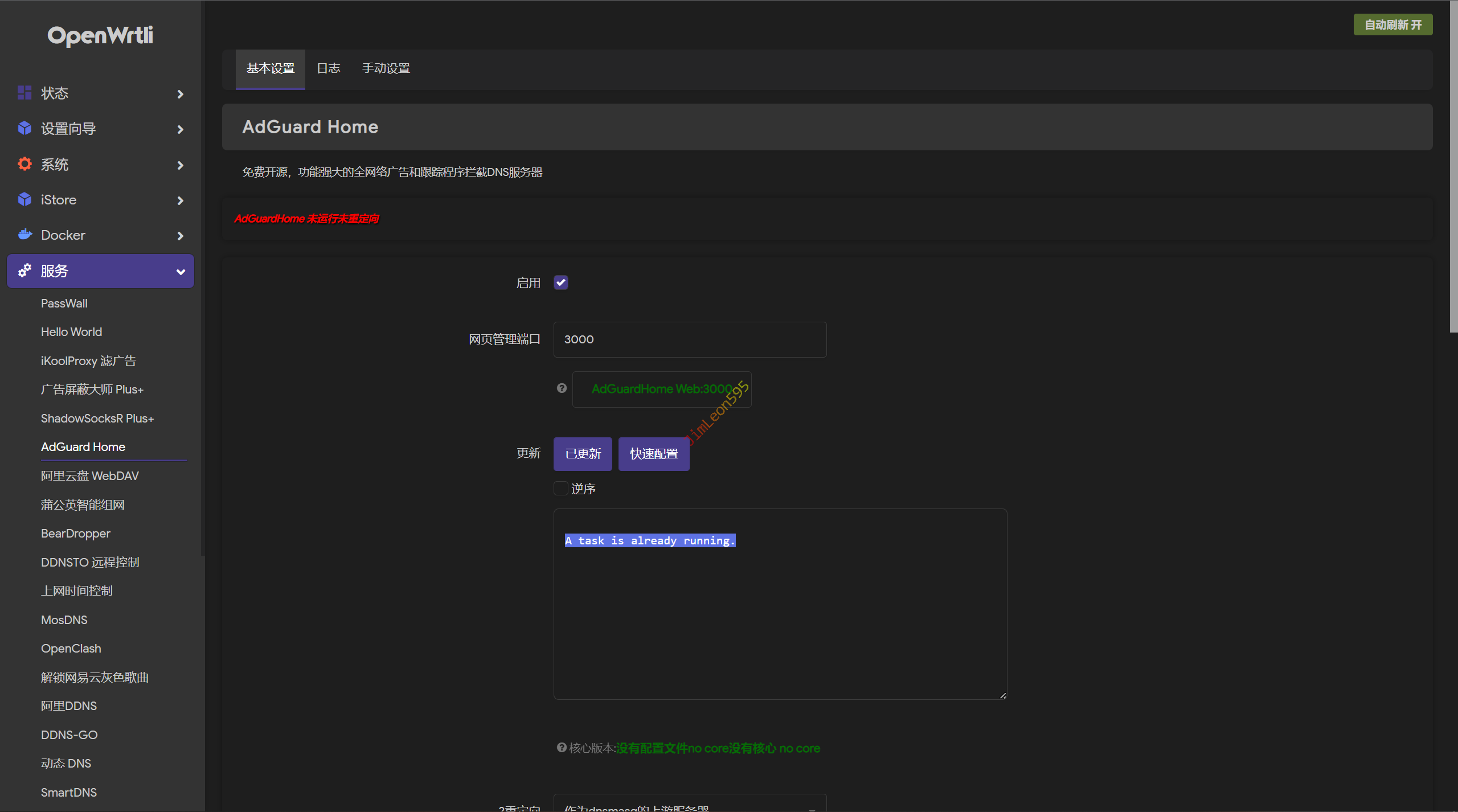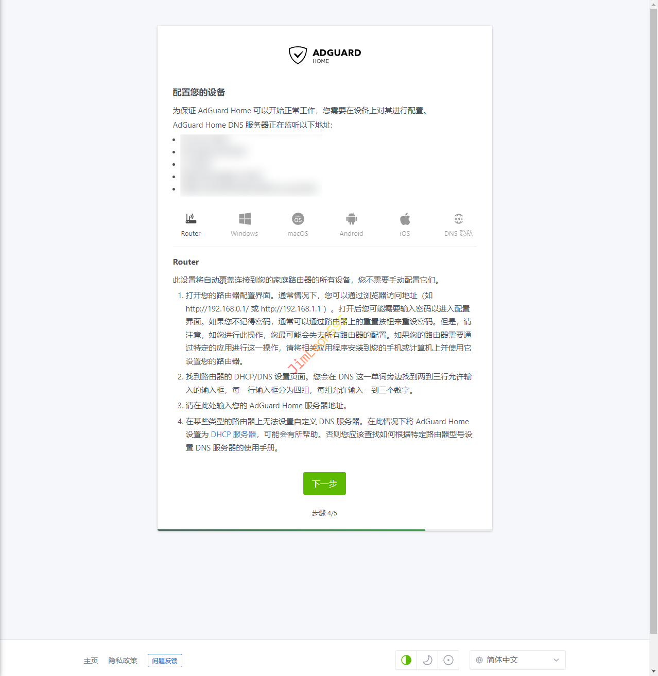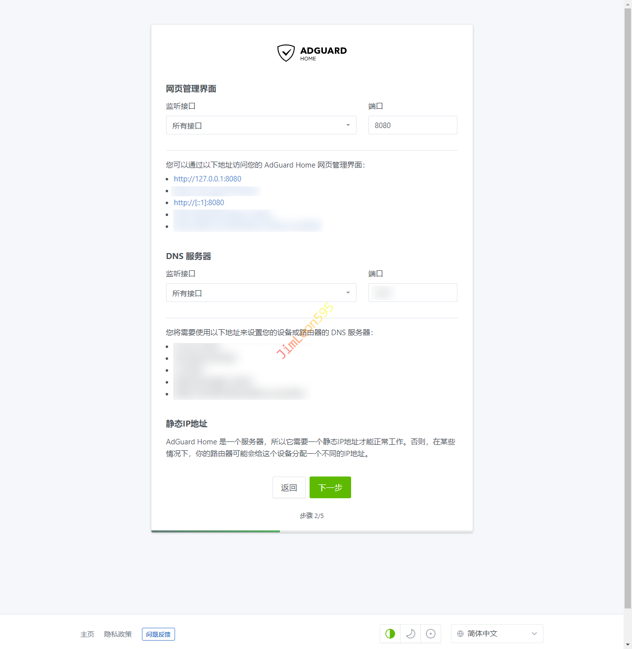 因为 AdGuard Home 管理页面和DNS端口冲突