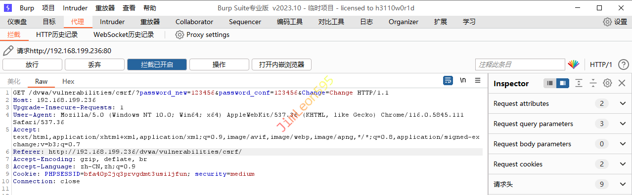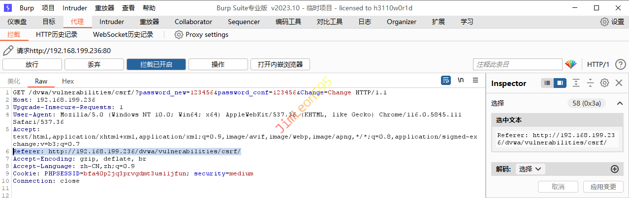 1 Referer: http://192.168.199.236/dvwa/vulnerabilities/csrf/