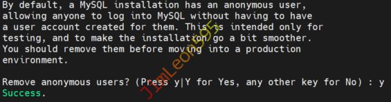 我选按y加上ENTER删除匿名帐户