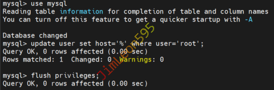 update user set host='%' where user='root';