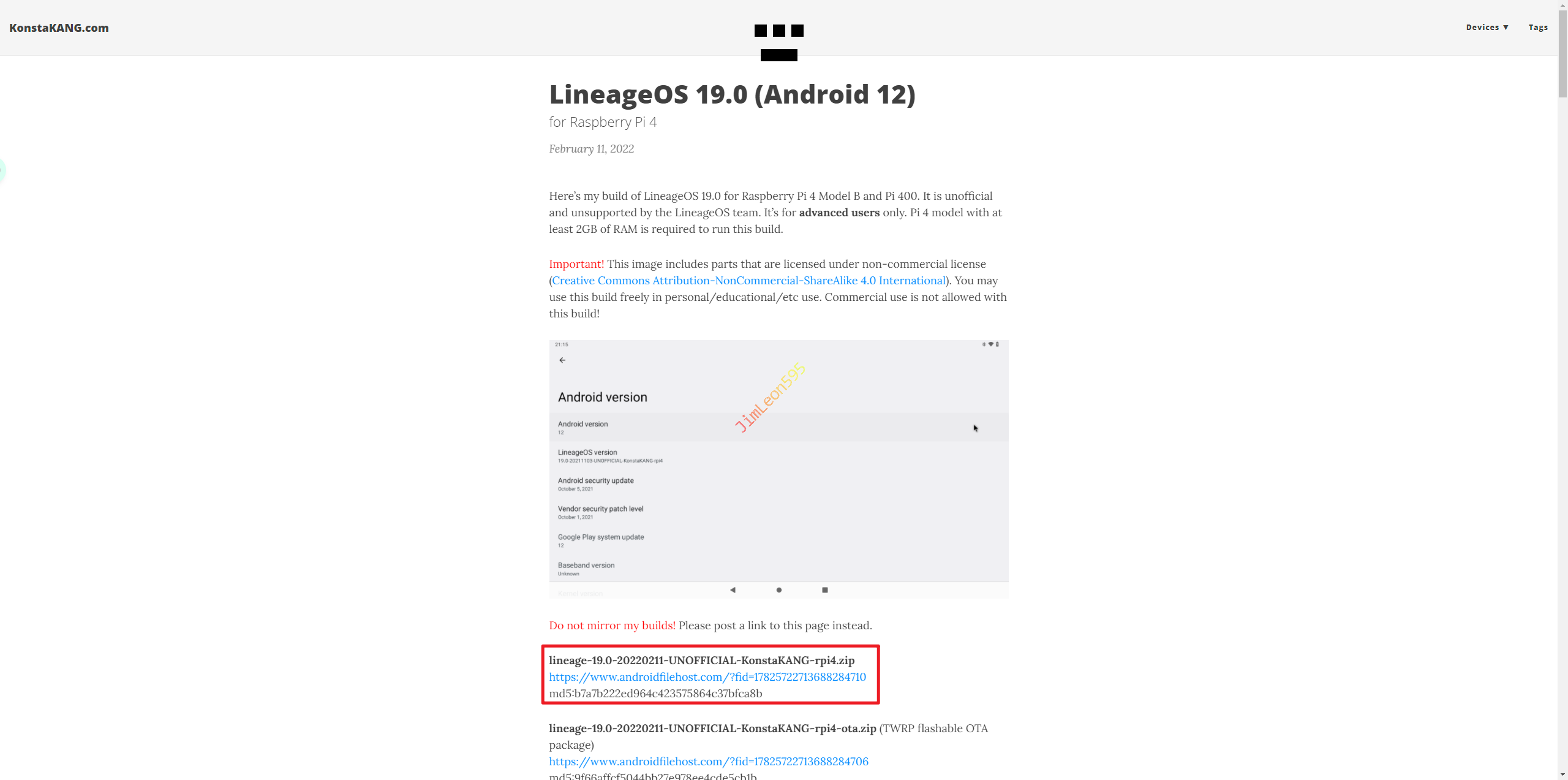 下载 Raspberry Pi 4B 定制版 LineageOS Android