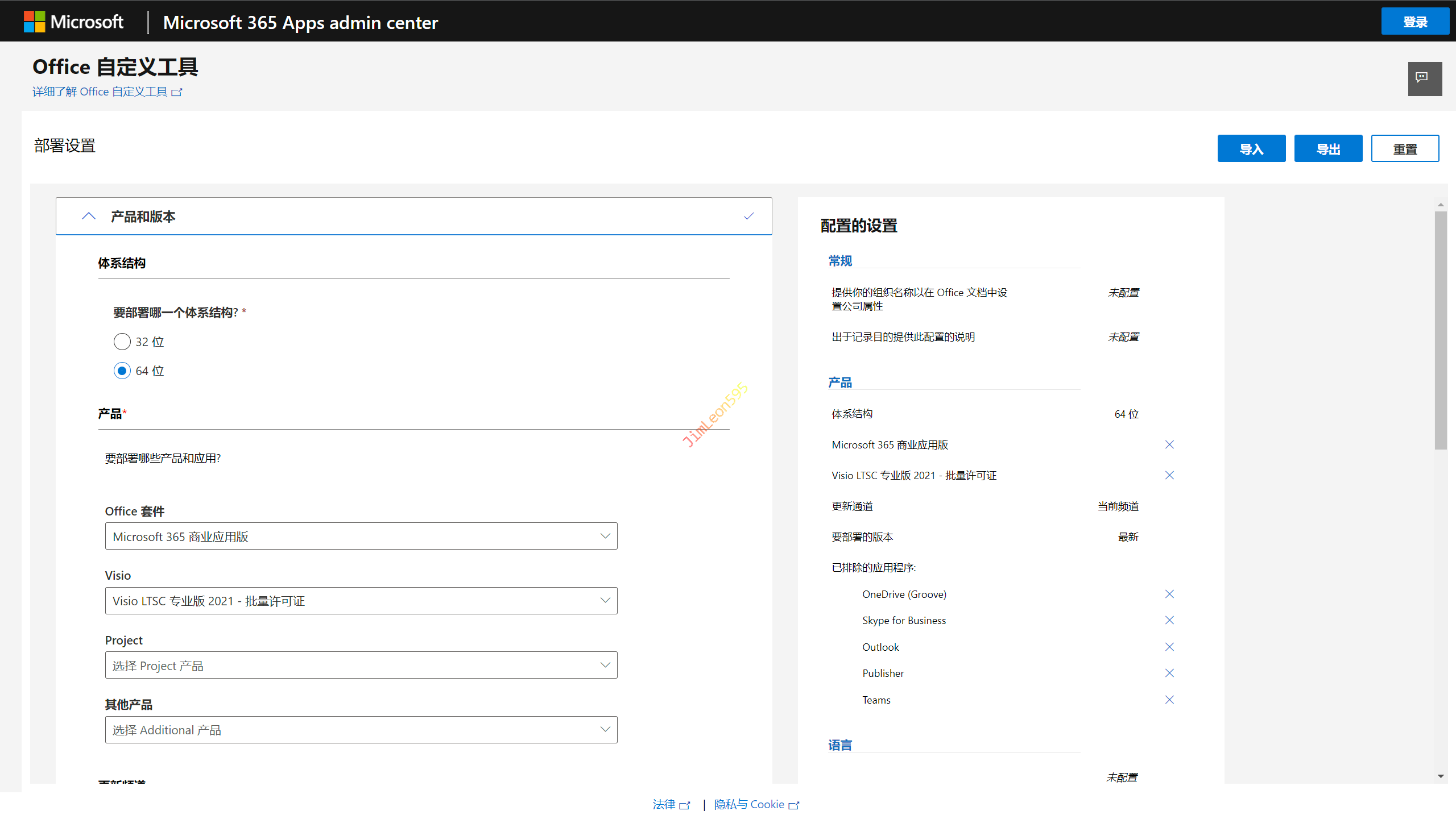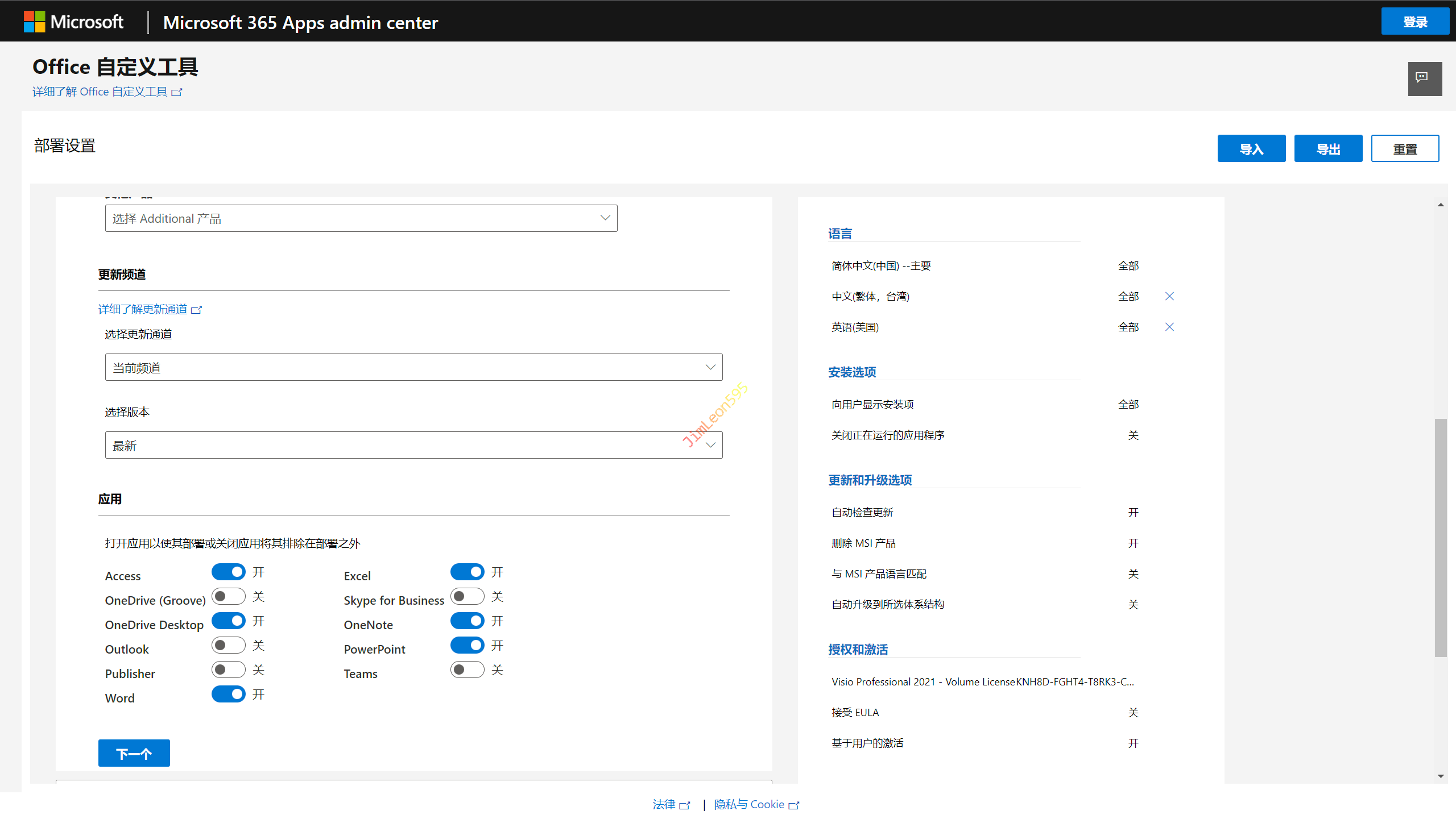 | <Configuration ID="43acb765-13f2-4614-8130-a7b6bc504952"> <Add OfficeClientEdition="64" Channel="Current"> <Product ID="O365BusinessRetail"> <Language ID="zh-cn" /> <Language ID="zh-tw" /> <Language ID="en-us" /> <ExcludeApp ID="Groove" /> <ExcludeApp ID="Lync" /> <ExcludeApp ID="Outlook" /> <ExcludeApp ID="Publisher" /> <ExcludeApp ID="Teams" /> </Product> <Product ID="VisioPro2021Volume" PIDKEY="KNH8D-FGHT4-T8RK3-CTDYJ-K2HT4"> <Language ID="zh-cn" /> <Language ID="zh-tw" /> <Language ID="en-us" /> <ExcludeApp ID="Groove" /> <ExcludeApp ID="Lync" /> <ExcludeApp ID="Outlook" /> <ExcludeApp ID="Publisher" /> <ExcludeApp ID="Teams" /> </Product> </Add> <Property Name="SharedComputerLicensing" Value="0" /> <Property Name="FORCEAPPSHUTDOWN" Value="FALSE" /> <Property Name="DeviceBasedLicensing" Value="0" /> <Property Name="SCLCacheOverride" Value="0" /> <Property Name="AUTOACTIVATE" Value="1" /> <Updates Enabled="TRUE" /> <RemoveMSI /> <AppSettings> <User Key="software\microsoft\office\16.0\excel\options" Name="defaultformat" Value="51" Type="REG_DWORD" App="excel16" Id="L_SaveExcelfilesas" /> <User Key="software\microsoft\office\16.0\powerpoint\options" Name="defaultformat" Value="27" Type="REG_DWORD" App="ppt16" Id="L_SavePowerPointfilesas" /> <User Key="software\microsoft\office\16.0\word\options" Name="defaultformat" Value="" Type="REG_SZ" App="word16" Id="L_SaveWordfilesas" /> </AppSettings> </Configuration>