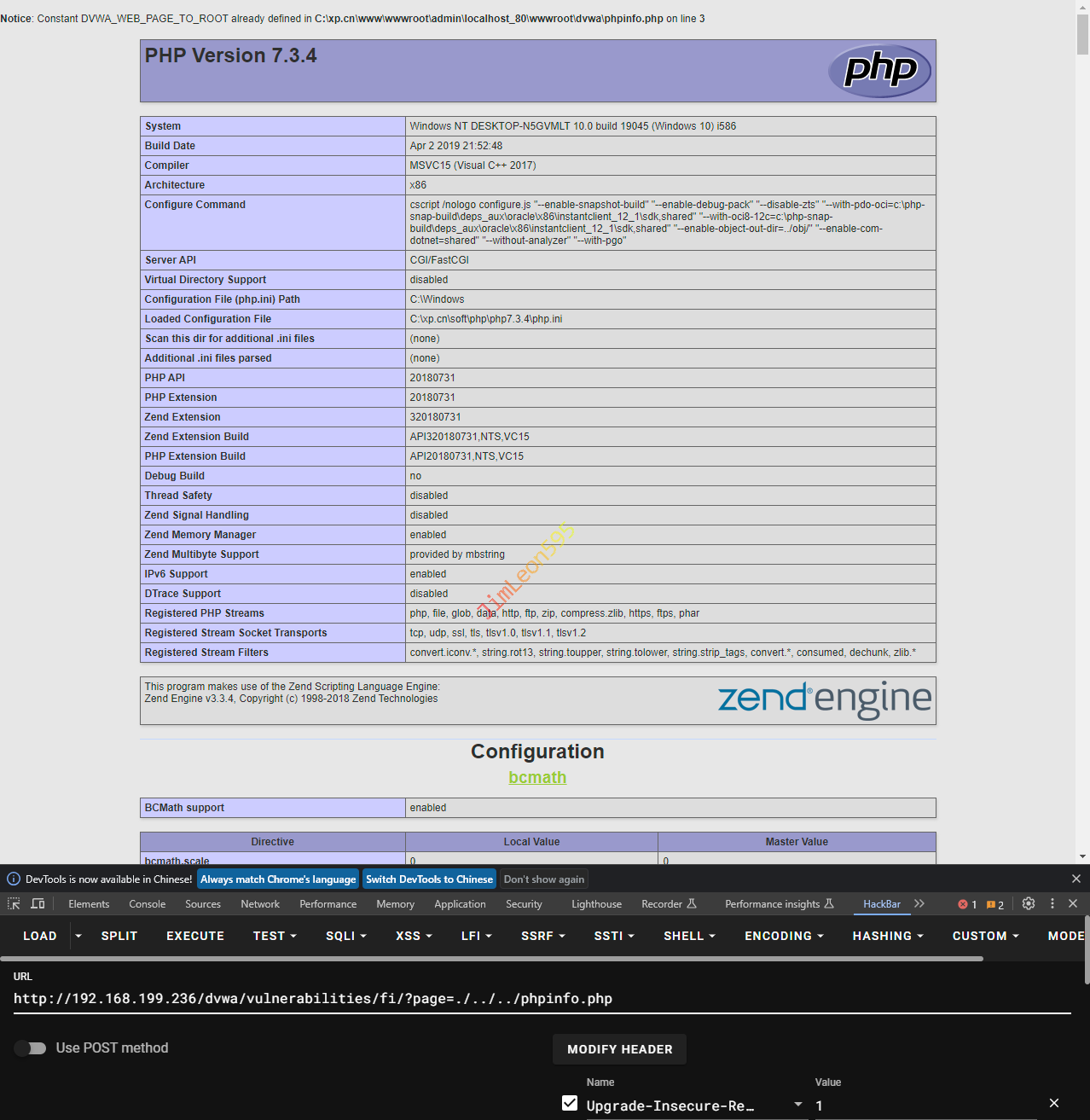 1 | http://192.168.199.236/dvwa/vulnerabilities/fi/?page=./../../phpinfo.php |