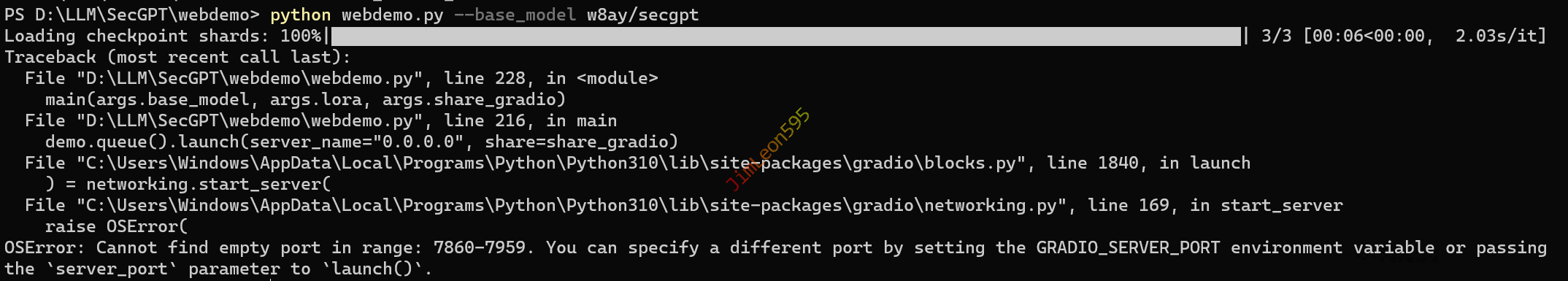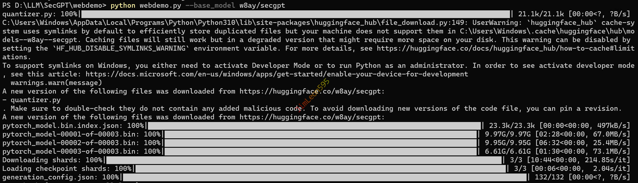 | cd .\webdemo\ python webdemo.py --base_model w8ay/secgpt