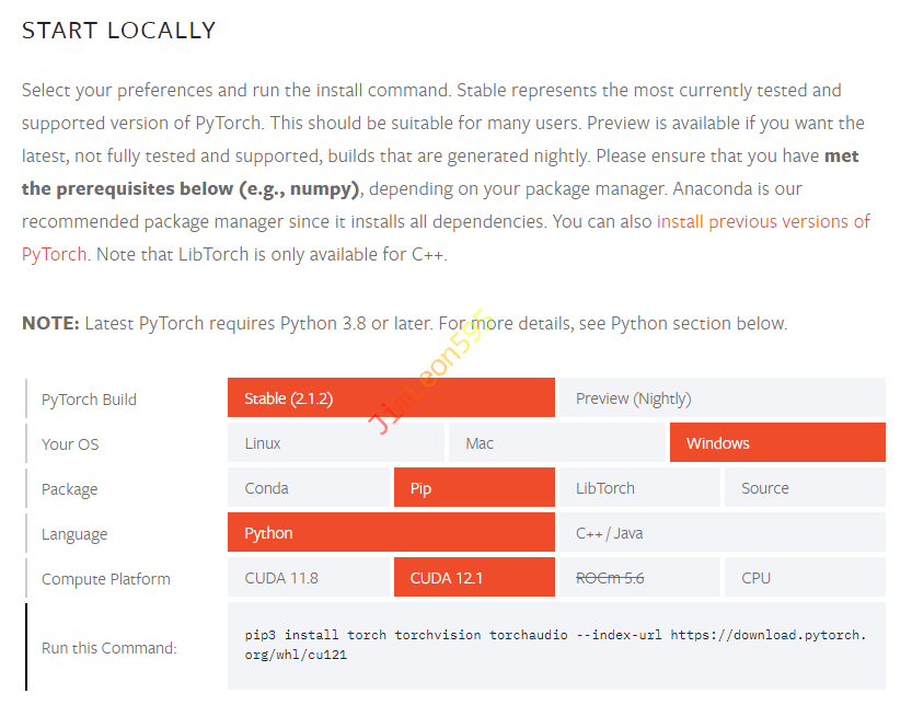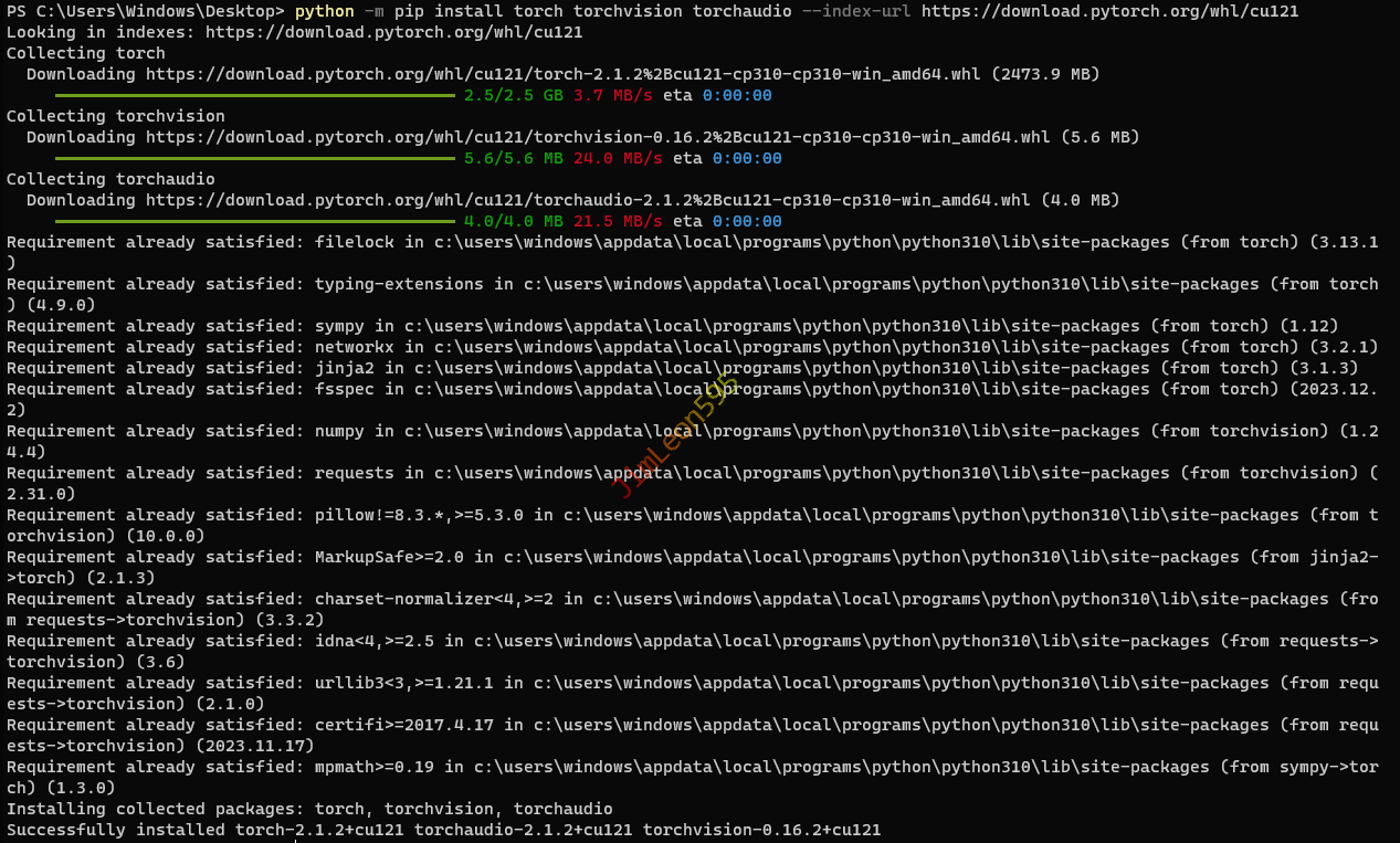 | python -m pip install torch torchvision torchaudio --index-url https://download.pytorch.org/whl/cu121