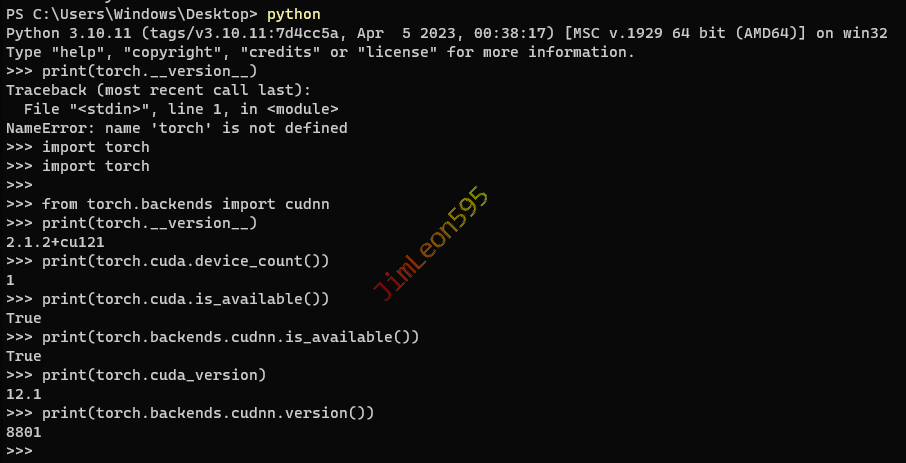 print(torch.__version__) print(torch.cuda.device_count()) print(torch.cuda.is_available()) print(torch.backends.cudnn.is_available()) print(torch.cuda_version) print(torch.backends.cudnn.version())