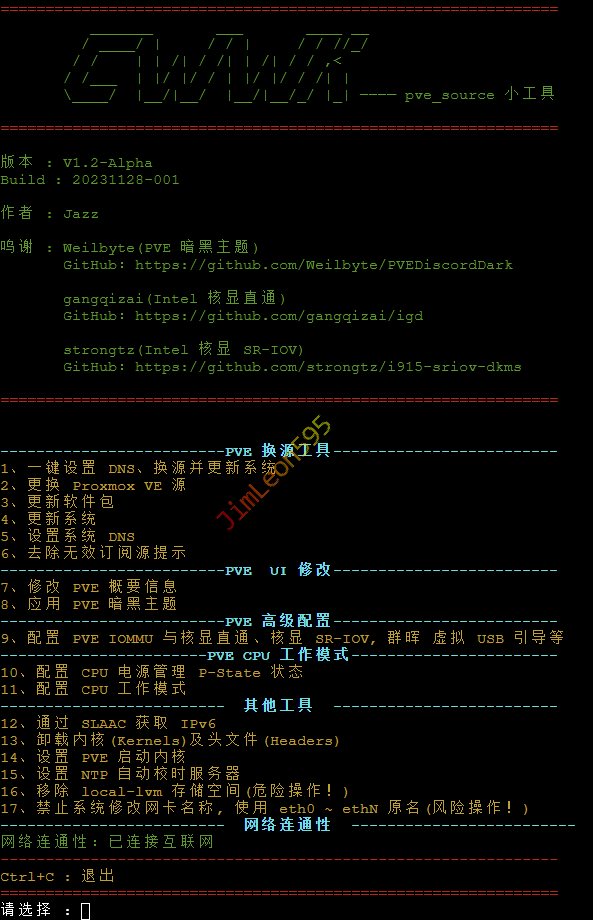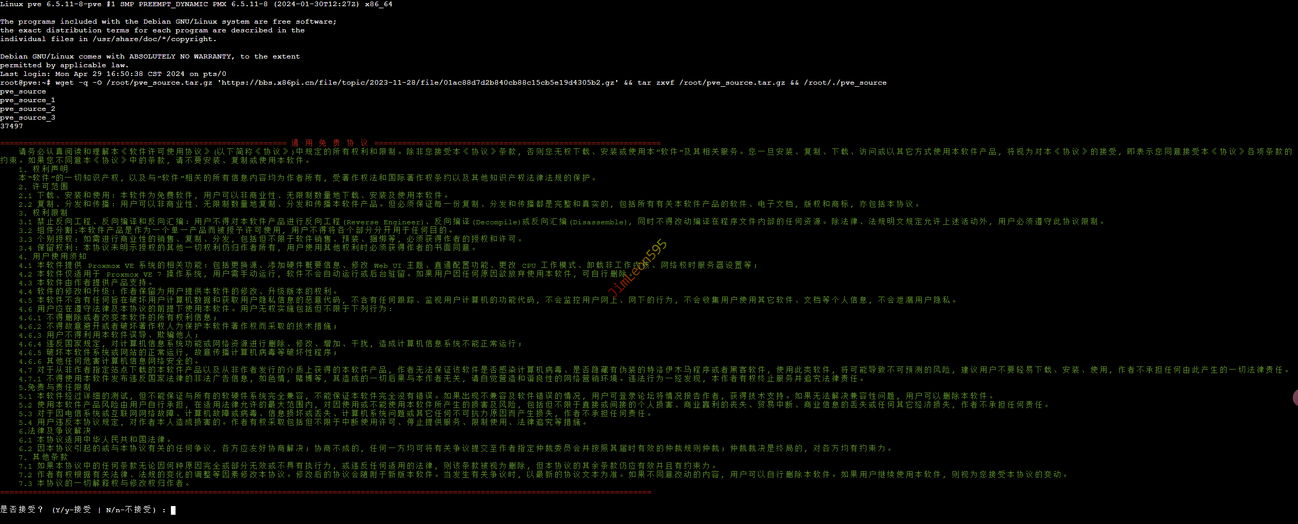 1 | wget -q -O /root/pve_source.tar.gz 'https://bbs.x86pi.cn/file/topic/2023-11-28/file/01ac88d7d2b840cb88c15cb5e19d4305b2.gz' && tar zxvf /root/pve_source.tar.gz && /root/./pve_source |