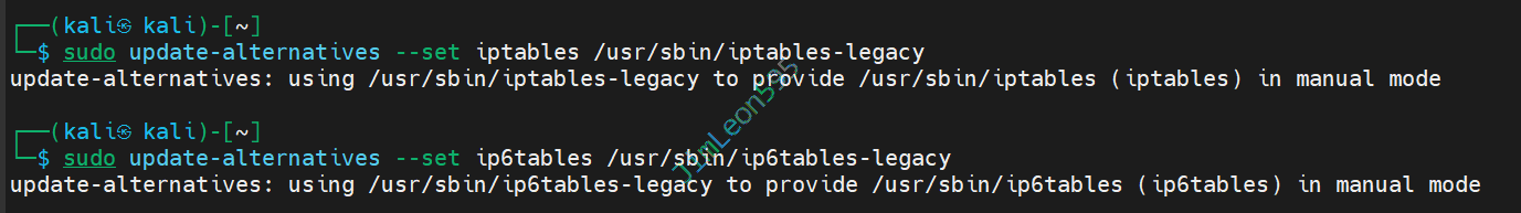 | sudo update-alternatives --set iptables /usr/sbin/iptables-legacysudo update-alternatives --set ip6tables /usr/sbin/ip6tables-legacy