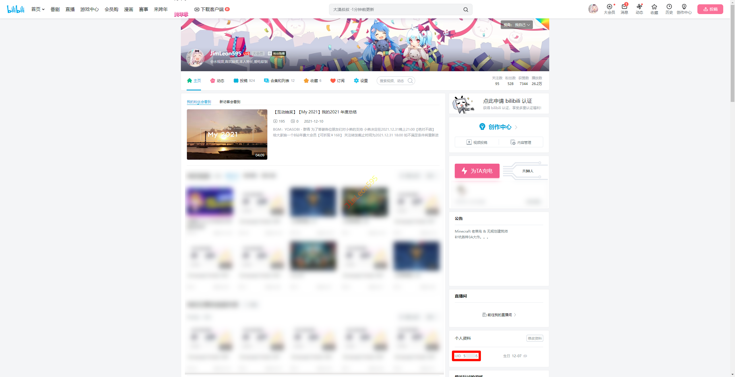 进入你的Bilibili 用户主页