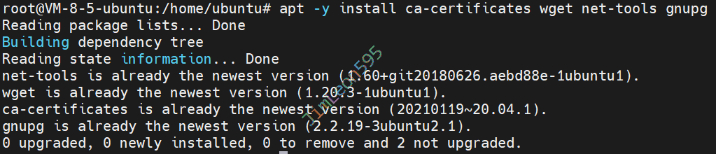1 | apt -y install ca-certificates wget net-tools gnupg |