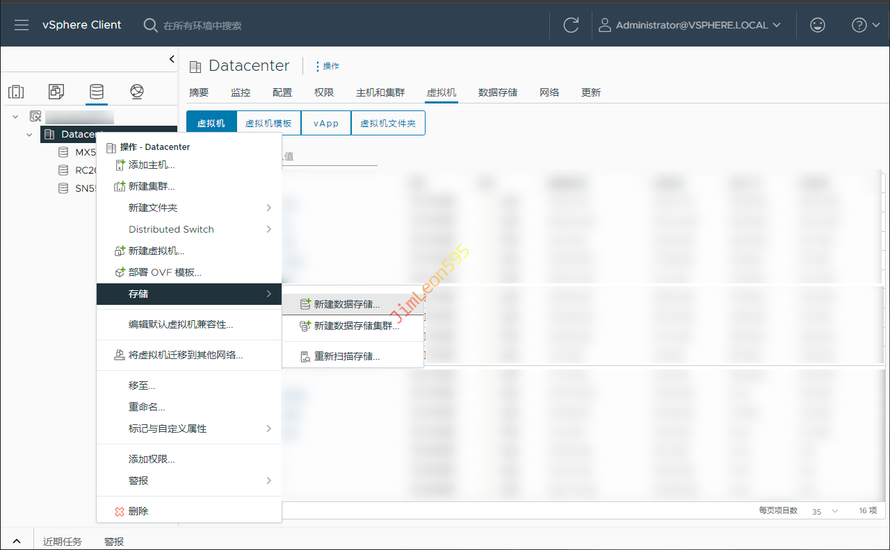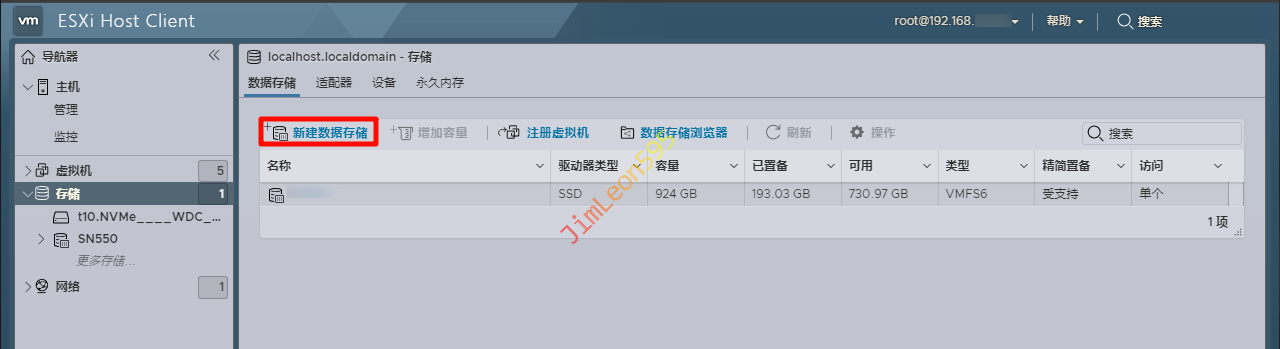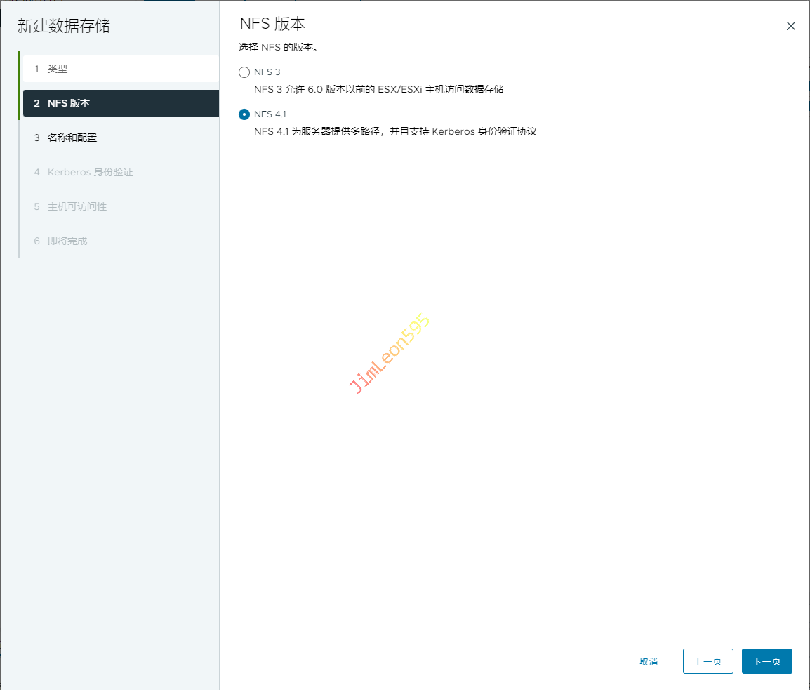 Datacenter-->存储-->新建数据存储