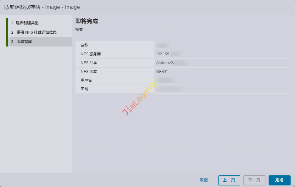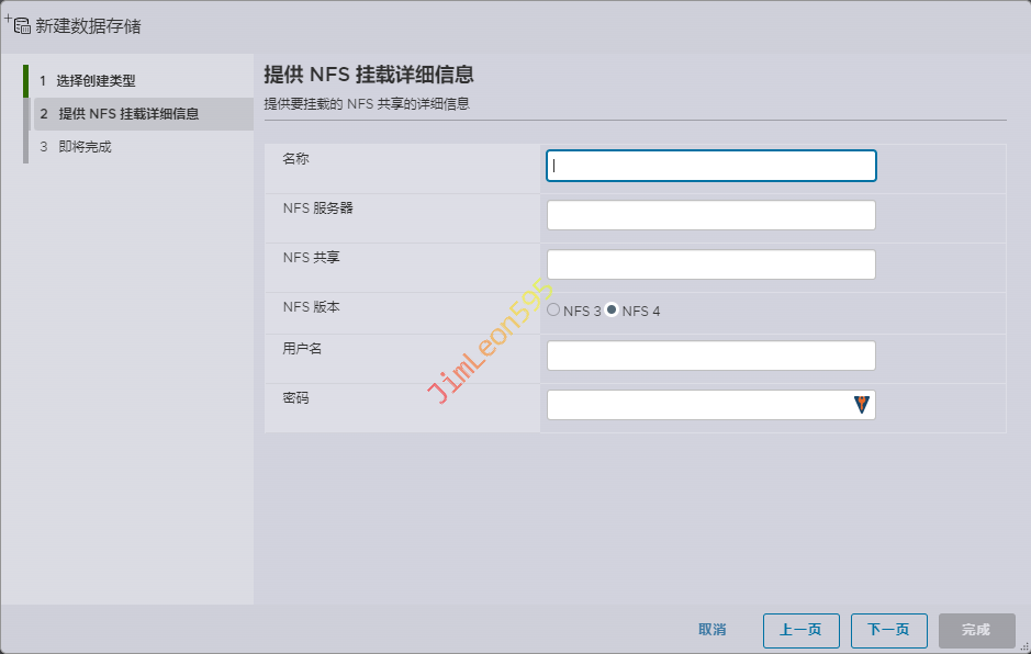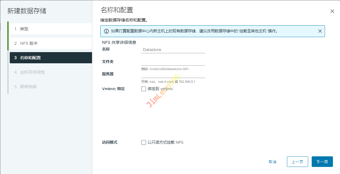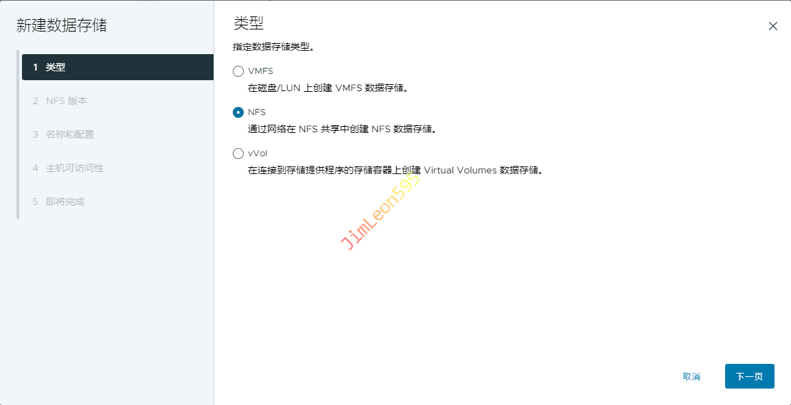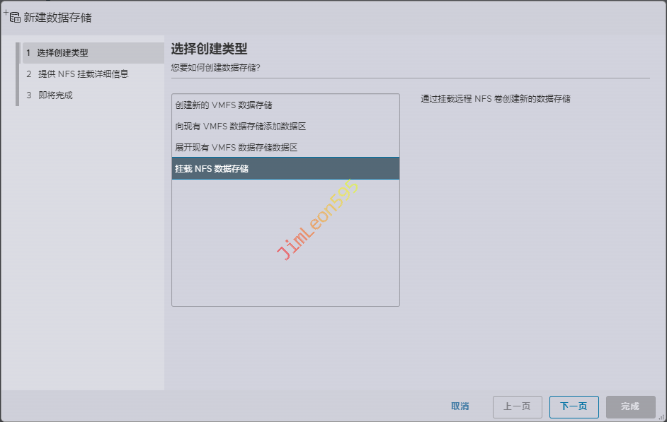 选择创建类型选择挂载 NFS 数据存储