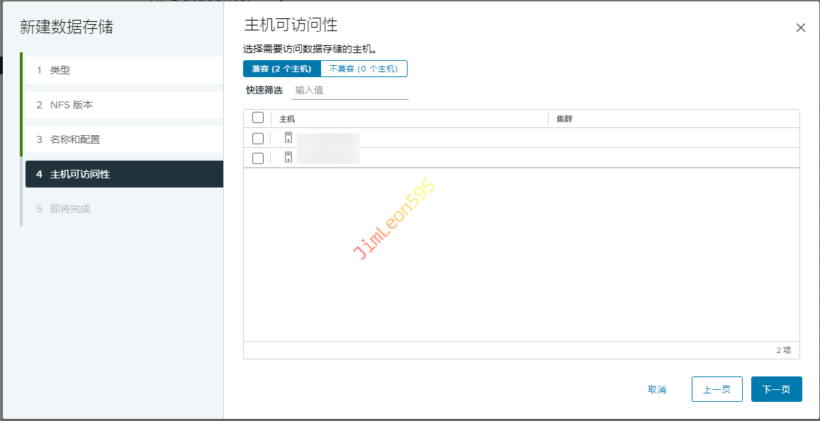 主机访问性选择需要拓展空间的ESXi主机