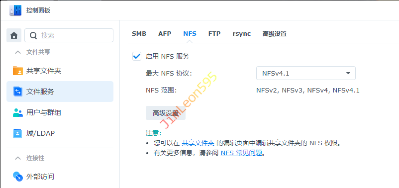 控制面板-->文件服务-->NFS- 勾选