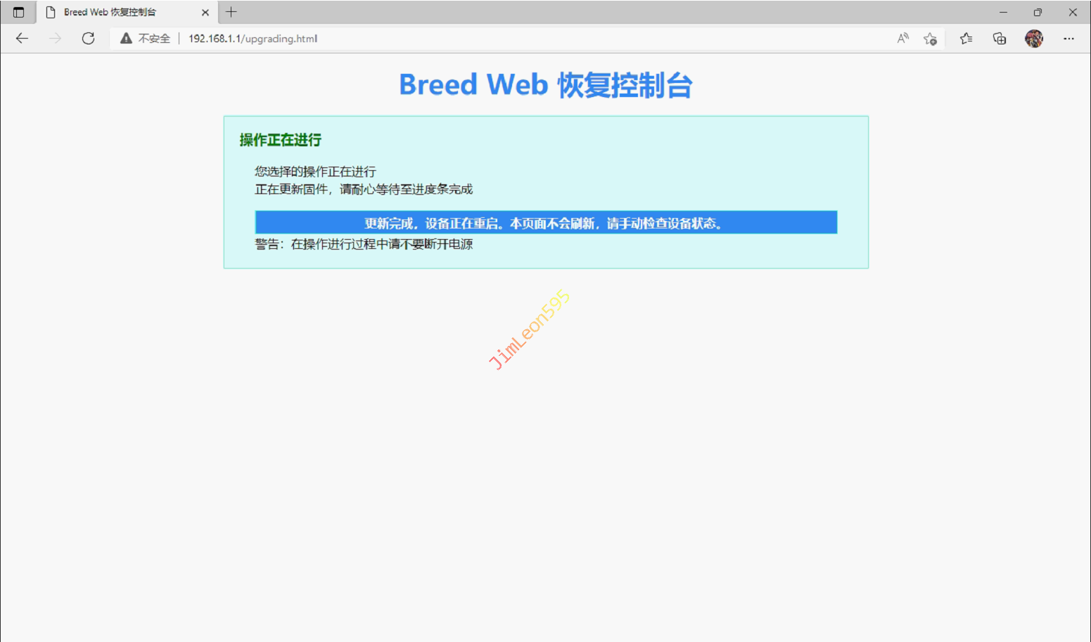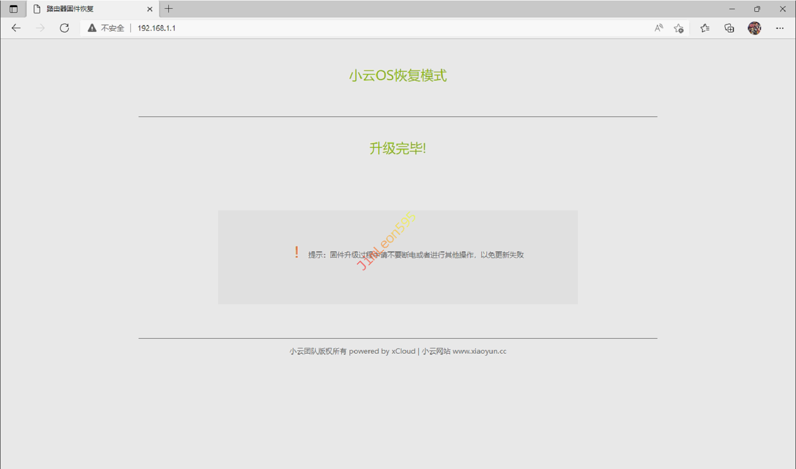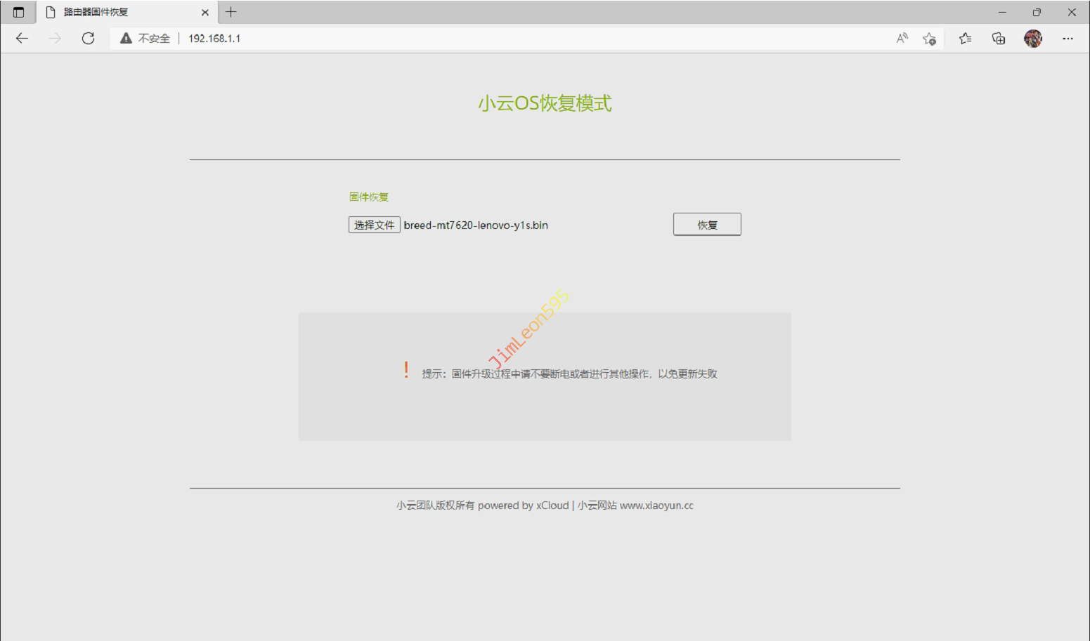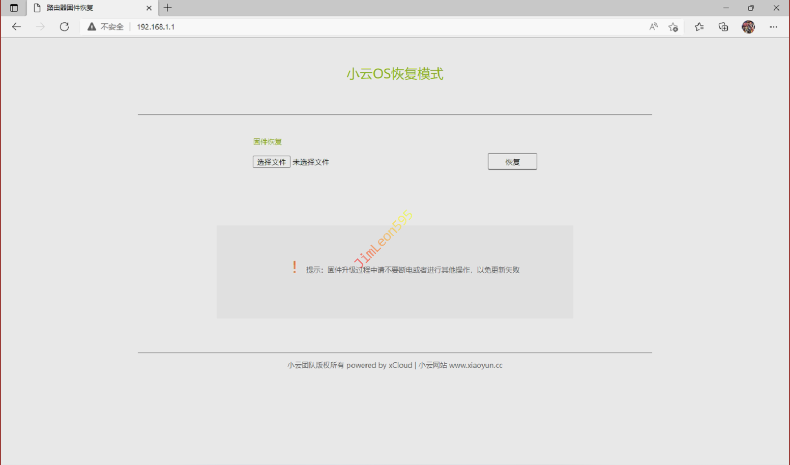 默认管理地址,我们需要输入192.168.1.1,我们就进到恢复模式管理页面