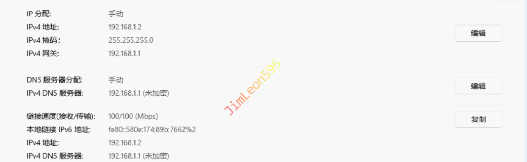 IP设为对应192.168.1.0/24段