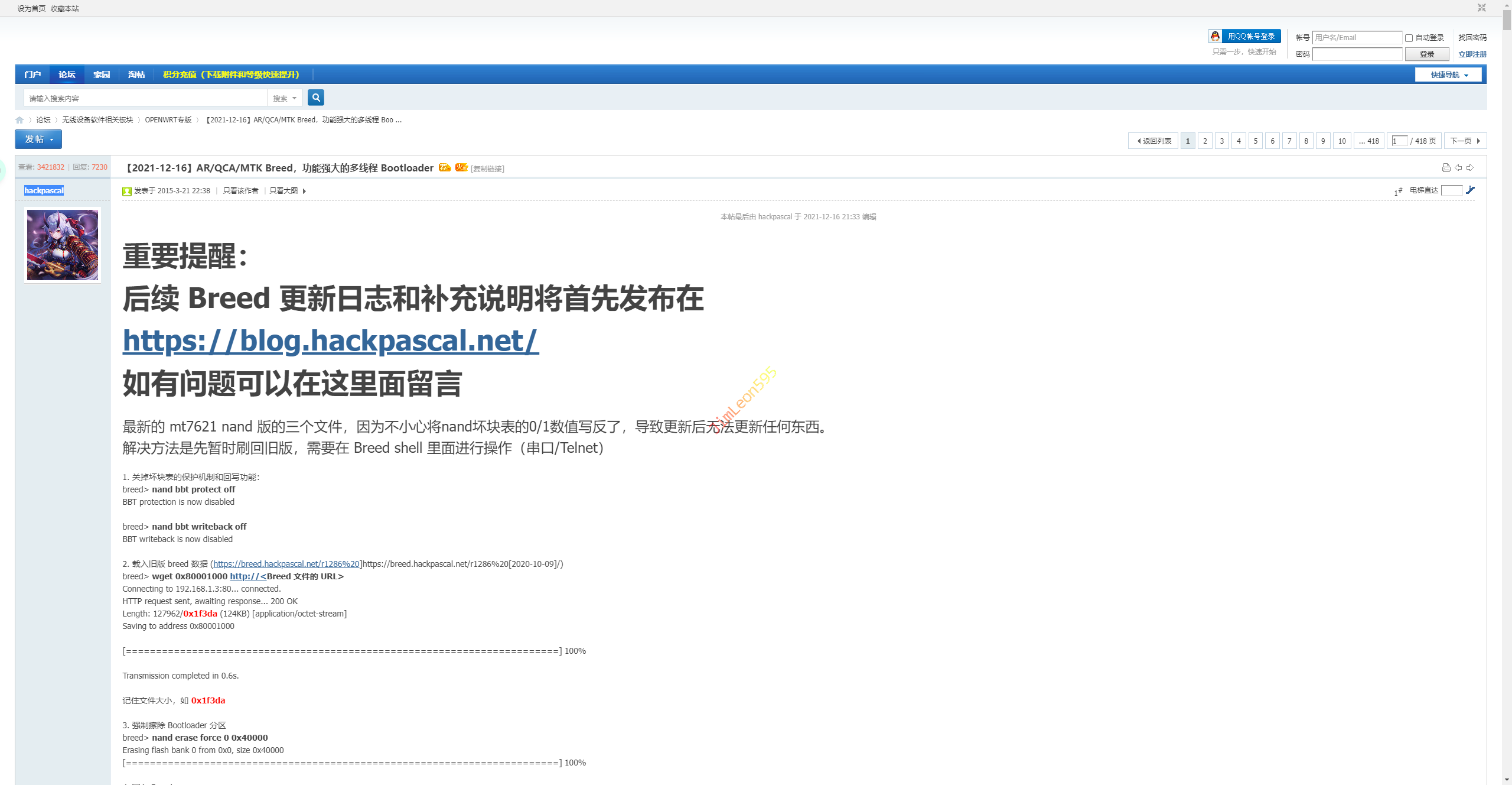 同时因为设备较老,Breed已经被放弃更新