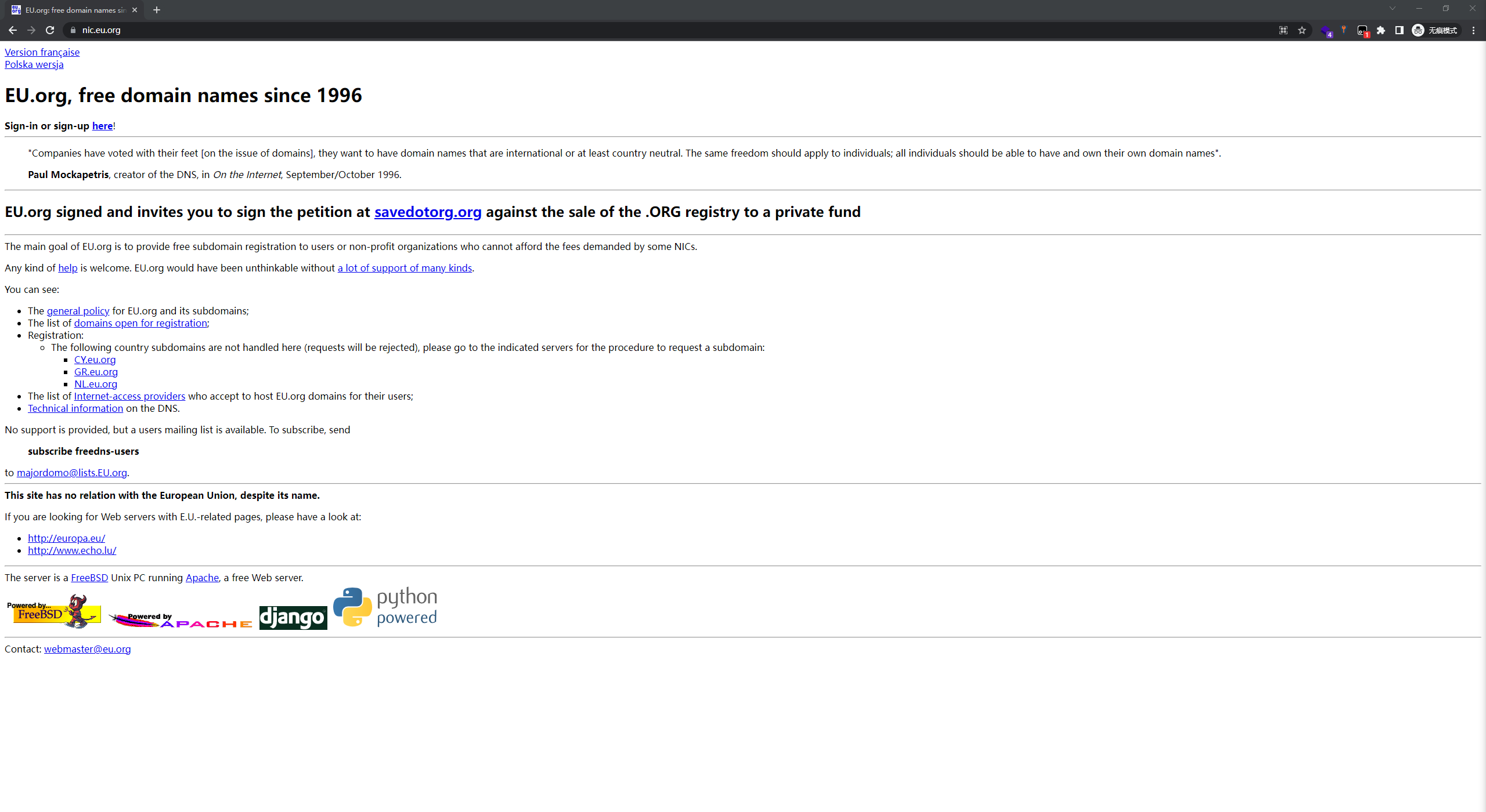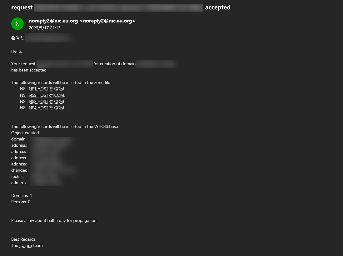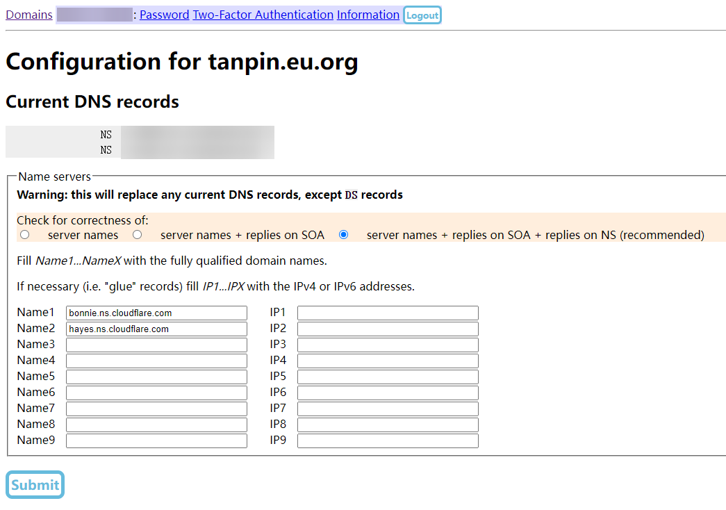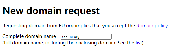 • 我们需要填入完整的域名,如:xxx.eu.org