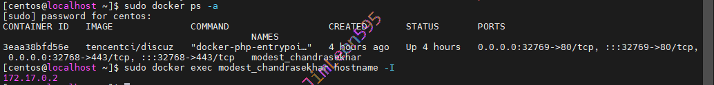 | sudo docker ps -asudo docker exec <docker_name> hostname -I