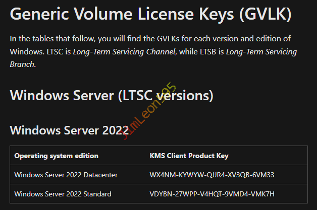 我们直接去巨硬家获取 Generic Volume License Keys