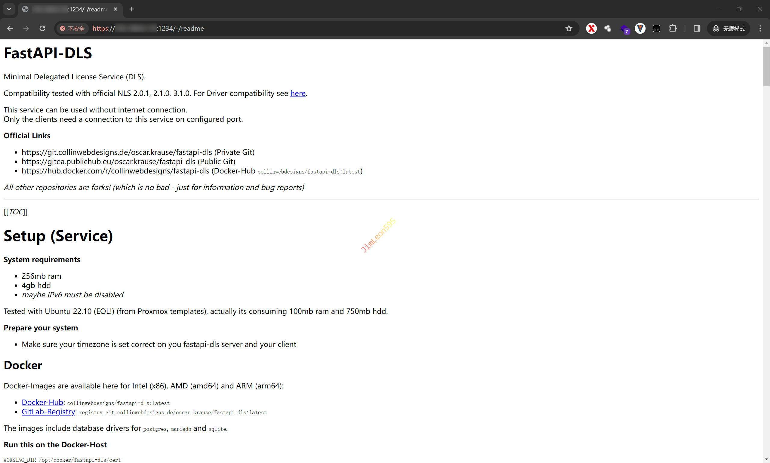| sudo docker run -d -e DLS_URL=x.x.x.x -e DLS_PORT=1234 -p 1234:443 makedie/fastapi-dls