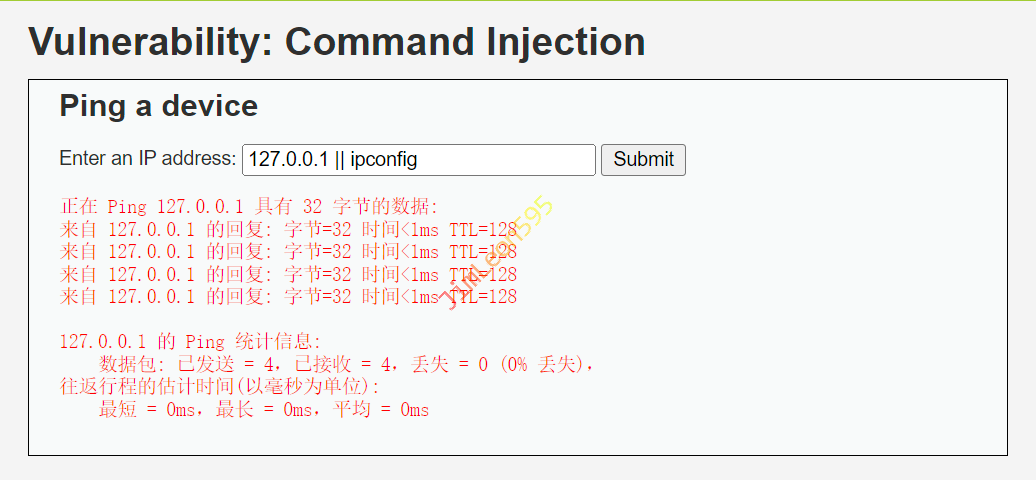 所以我们还是直接使用 127.0.0.1 & ipconfig 进行绕过
