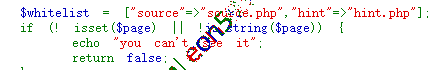 1 | $whitelist = ["source"=>"source.php","hint"=>"hint.php"] |