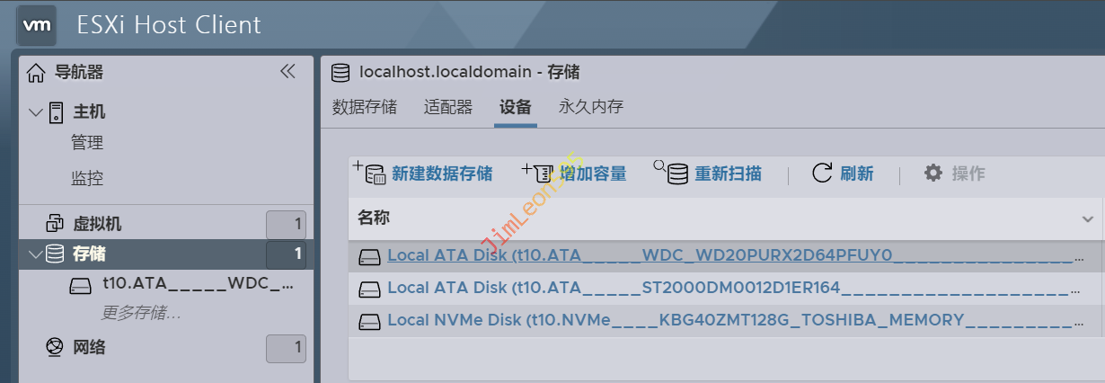 1. 选择 存储 --> 设备,点进需要直通的硬盘