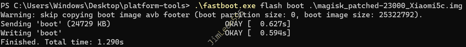 | 1 | fastboot flash boot <Magisk_Boot.img> |