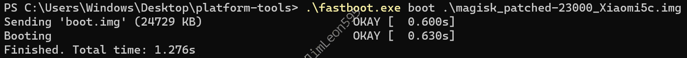 | 1 | fastboot boot <Magisk_Boot.img> |
