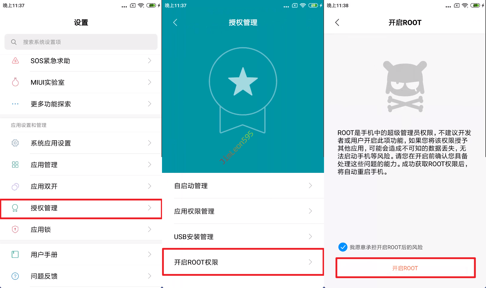 设置 --> 授权管理 --> 开启 ROOT 权限 --> 开启 ROOT