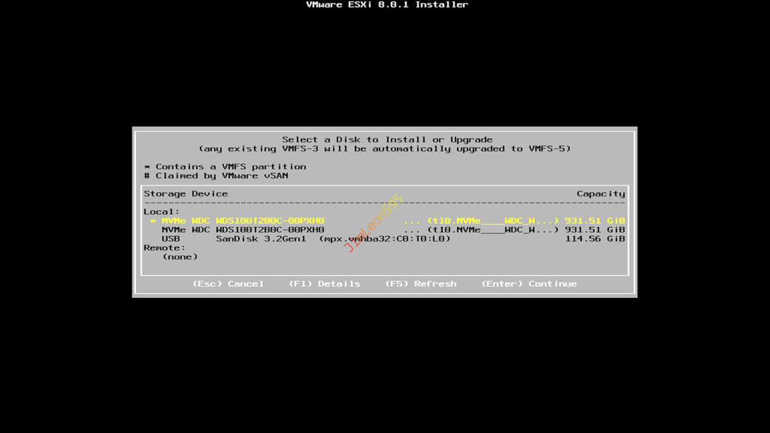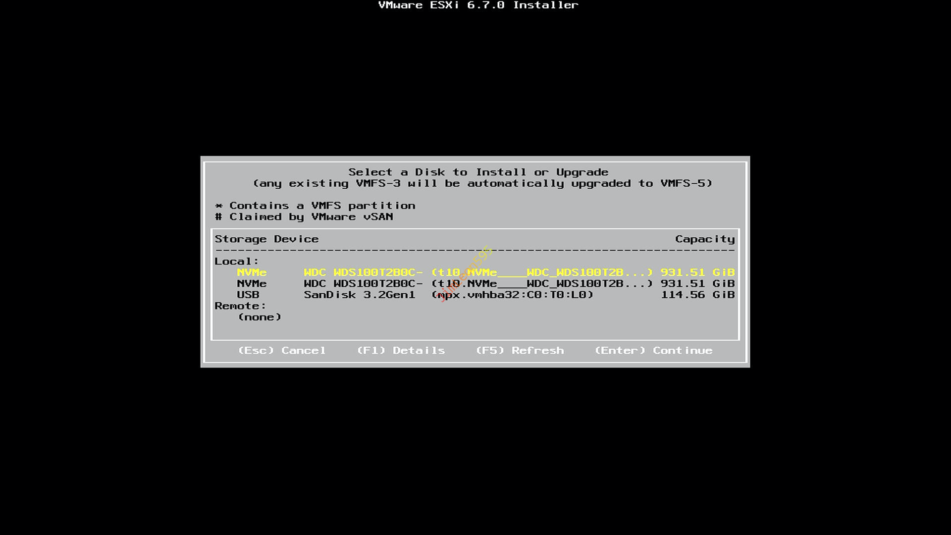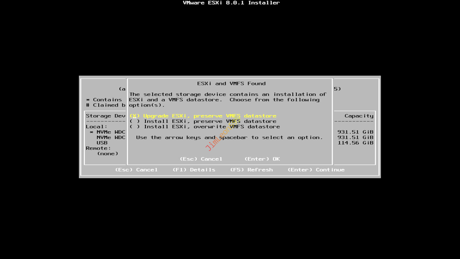 前言 ESXi会有比较多的漏洞 所以我们经常需要升级它 这次我们就会用一个比较简单的方法 而且因为ESXi 7会占用120 GB硬盘空间 从ESXi 6升级到ESXi 7 会比较简单解决这个问题 不然通过命令进行修改 Ventoy 引导 新版本 ESXi 还是那台M910Q小主机 还是Enter+F11进到UEFI引导项选择 选择新版本ESXi 7.0U3d 然后就开始进行跑码 无痛 升级 ESXi 和安装的时候一样Continue 点击F11同意EULA 选择之前安装旧版本ESXi系统的硬盘 这里大家要重点留意这一步 123456# 升级 ESXi,保存 VMFS 存储文件Upgrade ESXI, preserve VMFS datastore# 安装 ESXi,保存 VMFS 存储文件Install ESXI, preserve VMFS datastore# 安装 ESXi,覆盖 VMFS 存储文件Install ESXI, overwrite VMFS datastore 点击F11开始进行Upgrade操作 ...