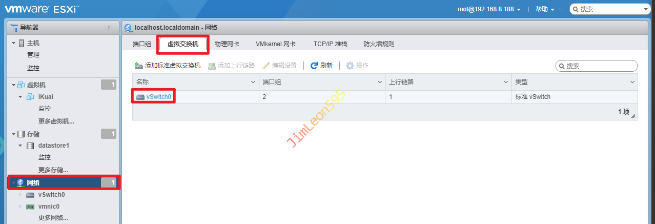 网络 --> 虚拟交换机 --> vSwitch0